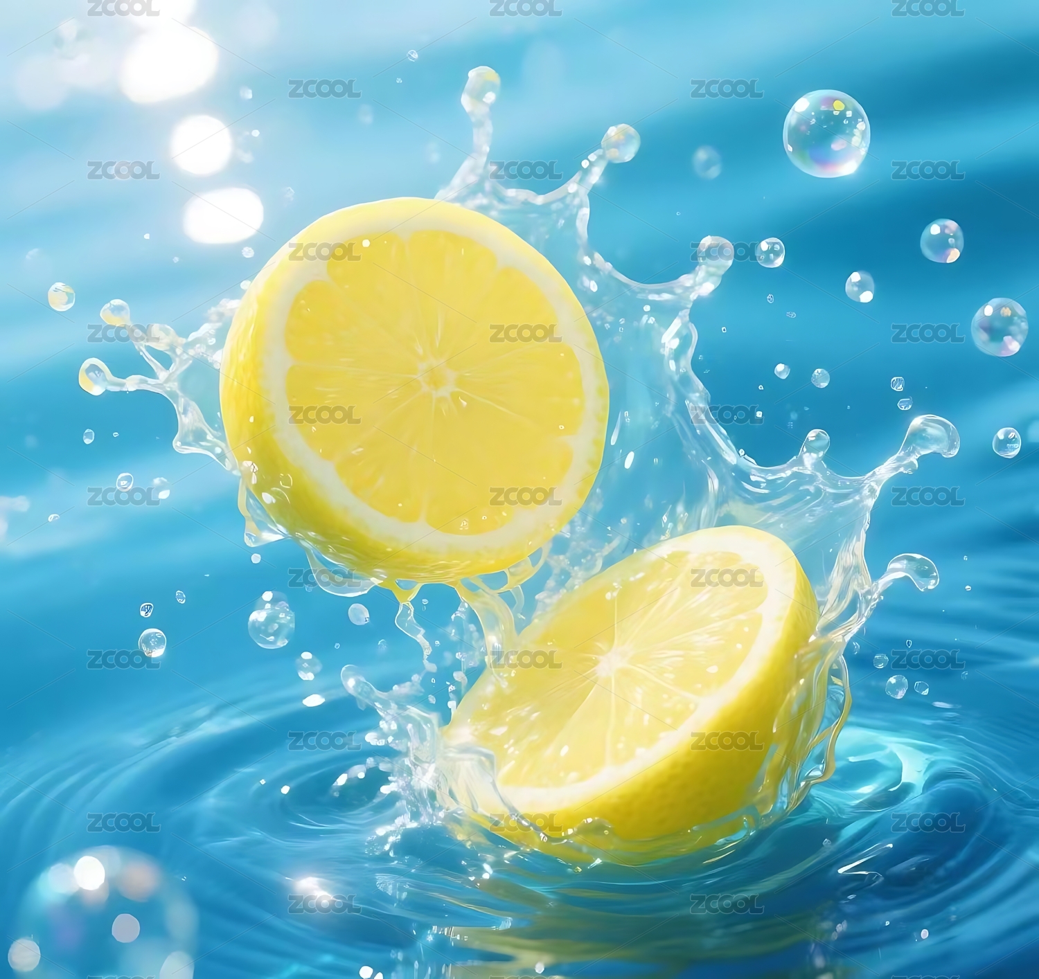 写实立体溅起水花的新鲜柠檬柚子汁水四溢
