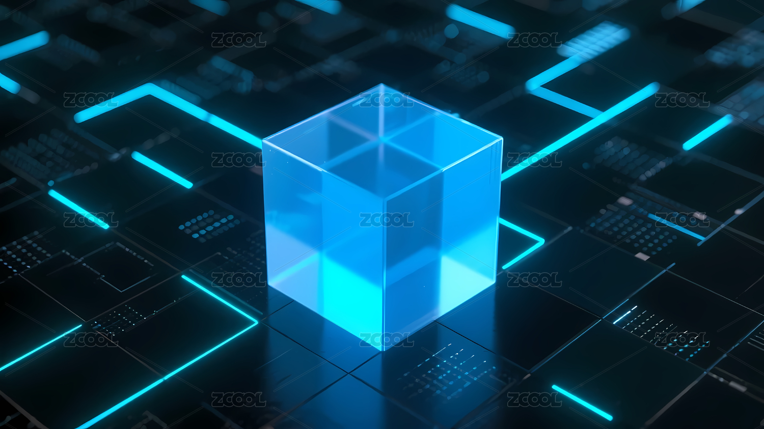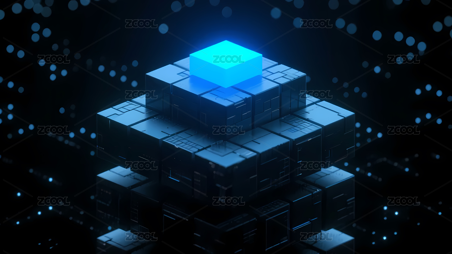 蓝色,光点,背景,科技,深蓝,发光,未来,网格,立体,魔方