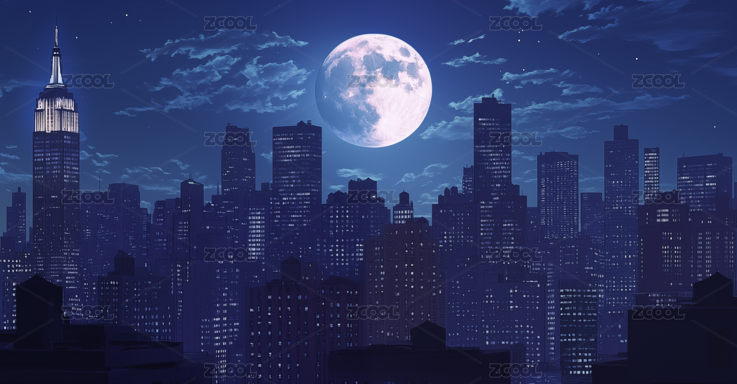 城市夜空与明月