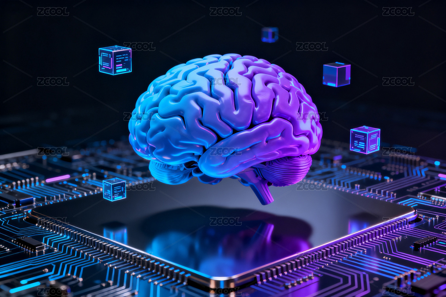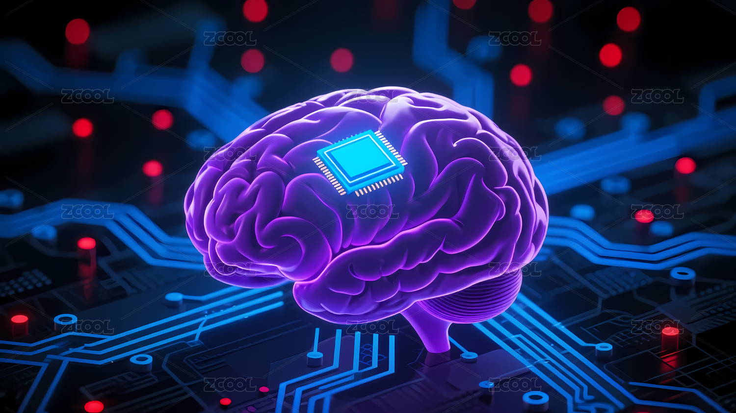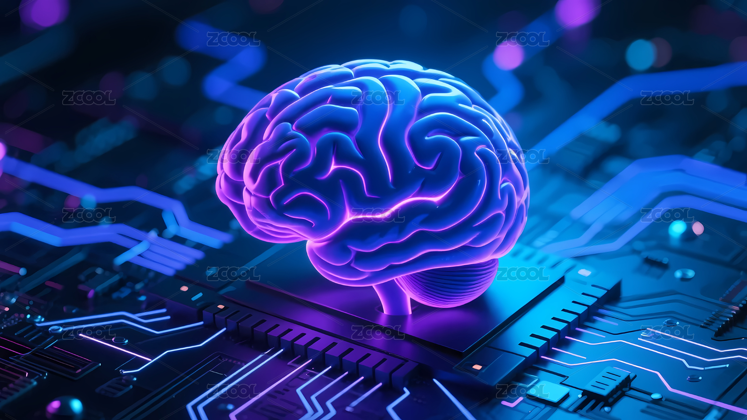 蓝色,背景,科技,未来,设计,电路,创意,光效,大脑,模型