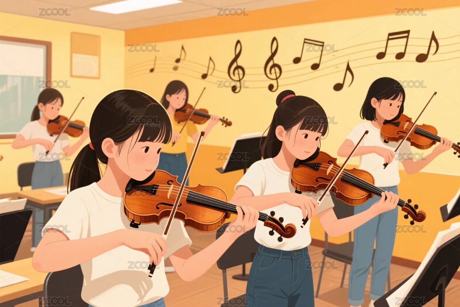 小提琴,演奏,音乐,课堂,学生,插画,卡通,教育,人物,艺术