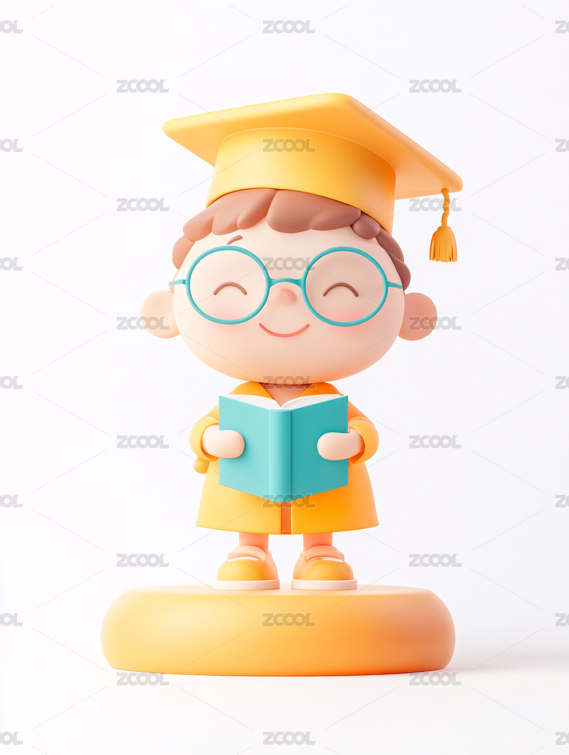 背书包戴博士帽的小孩3D卡通立体人物插画