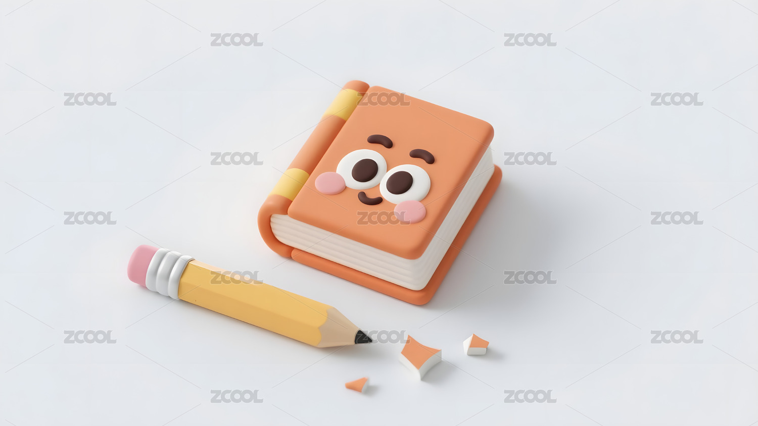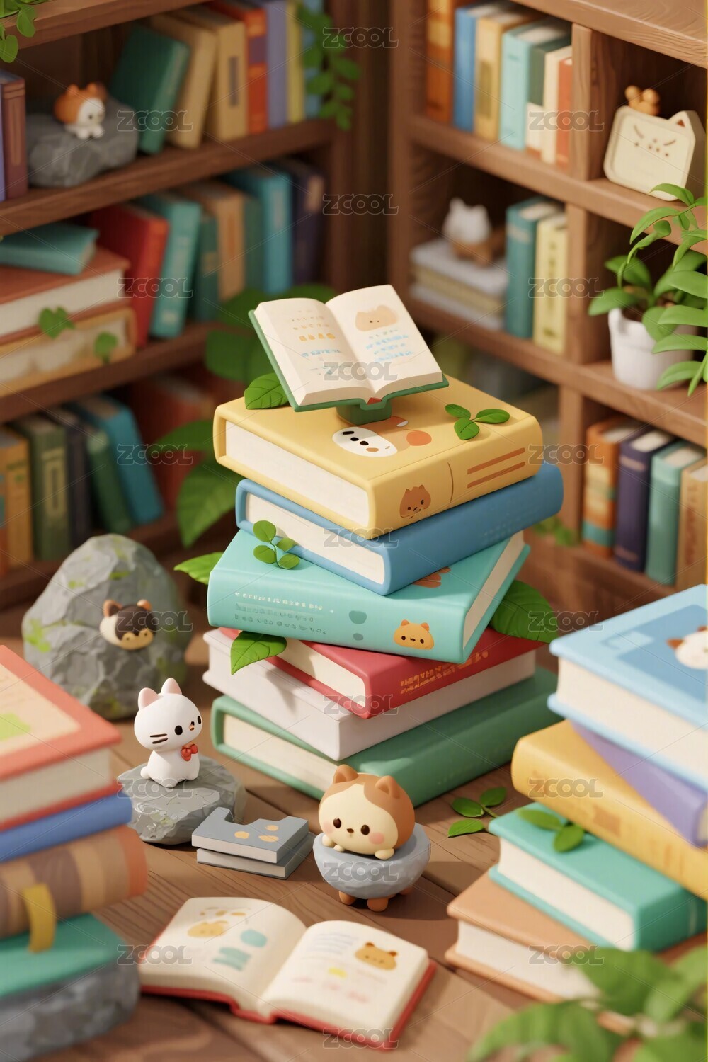 卡通,插画,小书,笑脸,桌面,书籍,植物,可爱,萌系,简约
