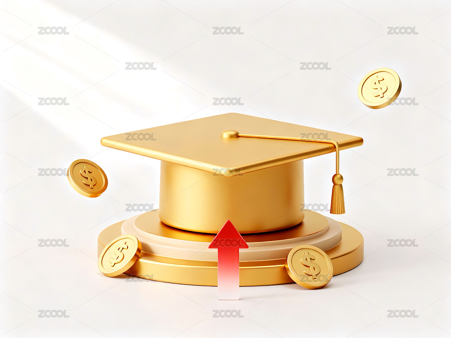 金色,钱包,毕业帽,金币,美元符号,插画,教育,财富,成功,金色元素