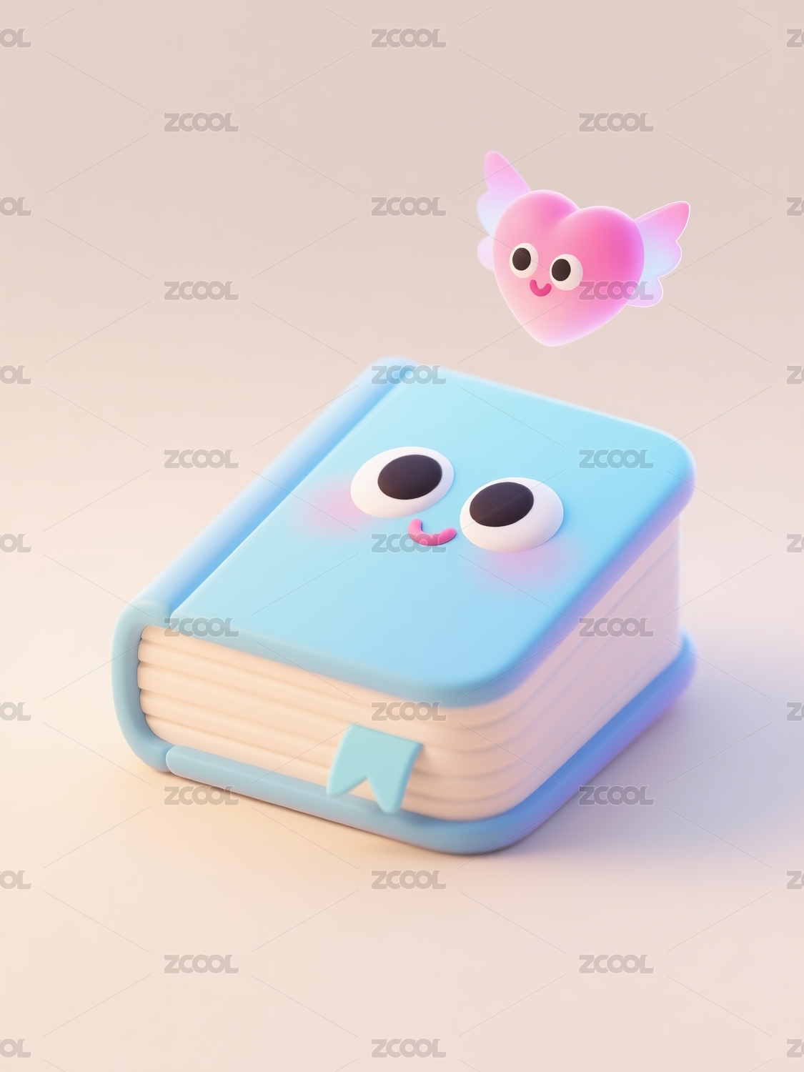 3D卡通可爱的书本和爱心