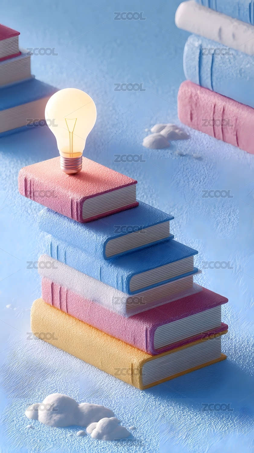卡通书籍堆叠插画场景