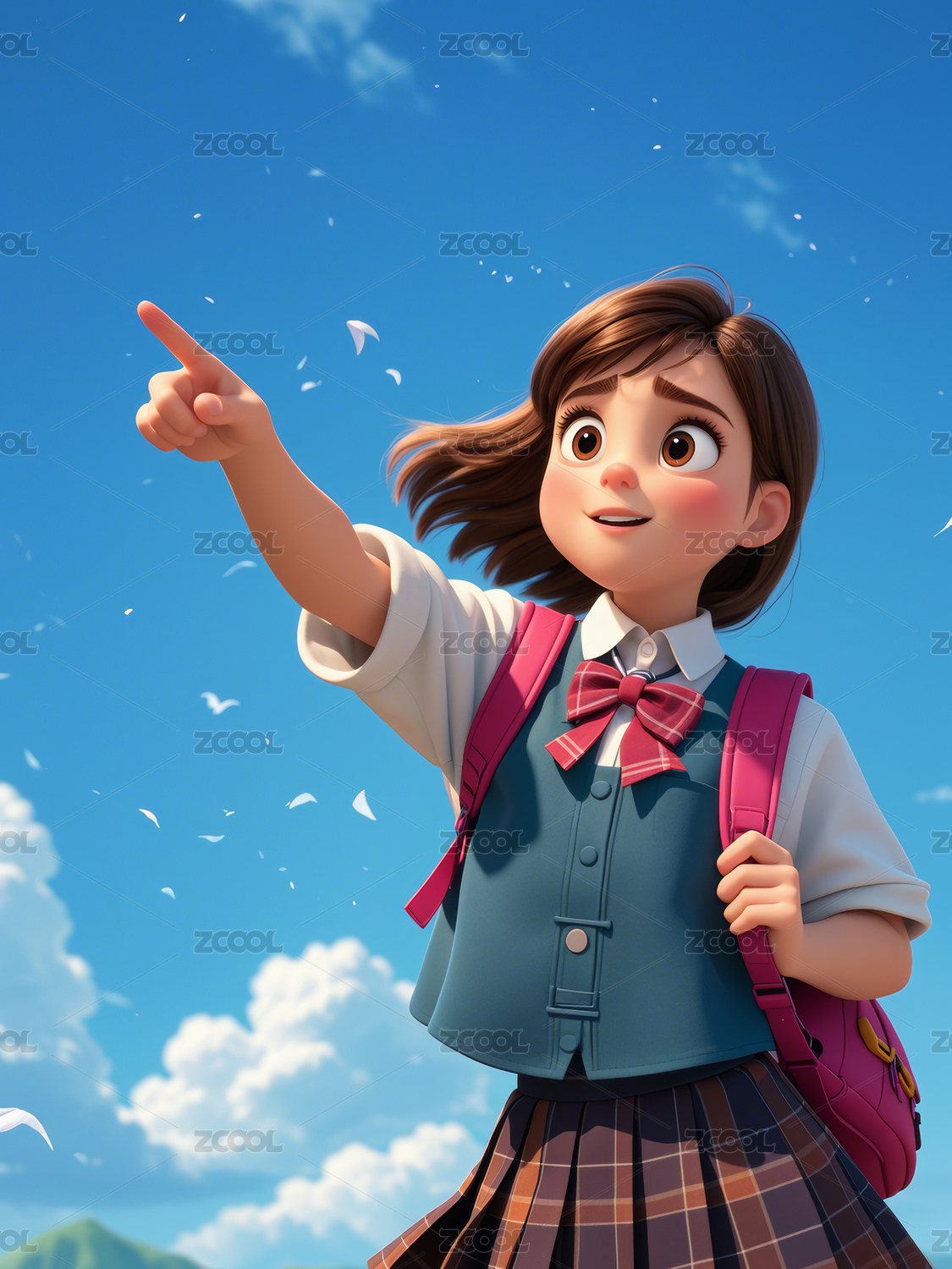 女孩,山顶,蓝天,插画,卡通,动画,书本,探索,成长,梦想