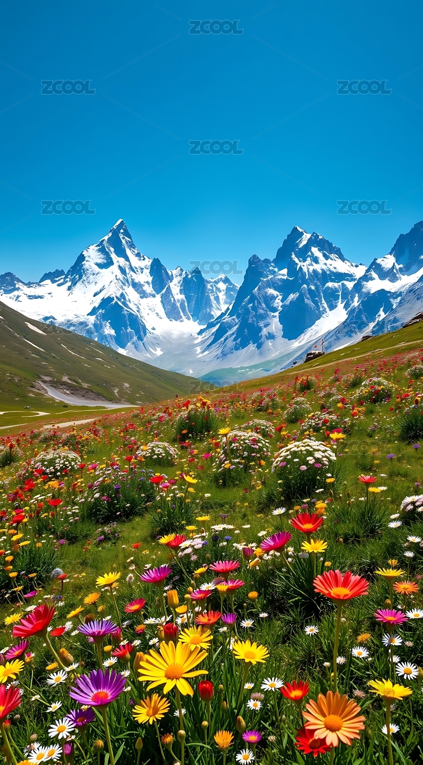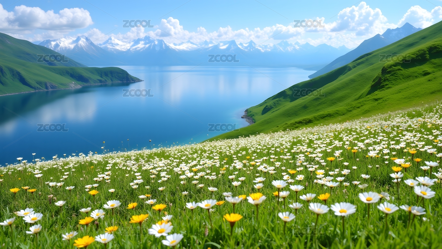 湖泊,山脉,野花,草地,蓝天,自然,风景,山水,清新,生态
