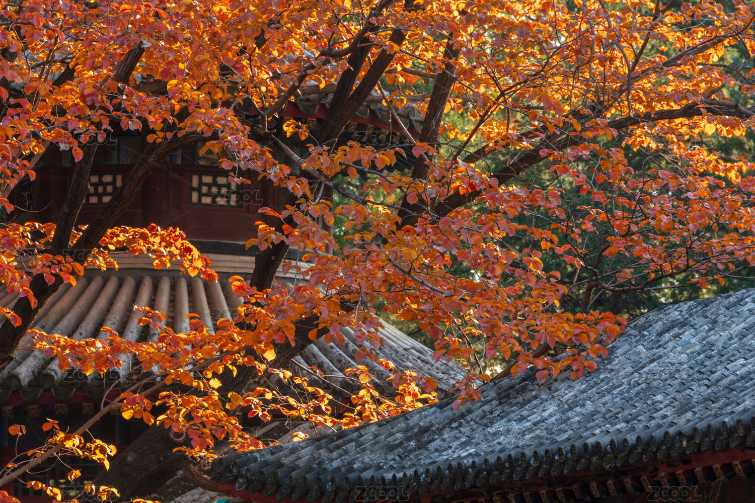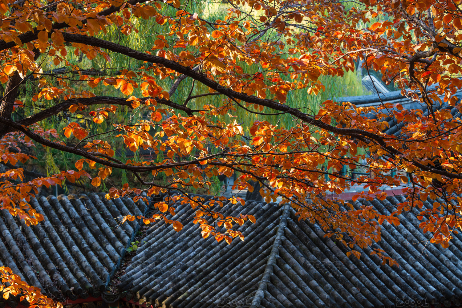 山东济南淌豆寺秋天黄色千年银杏树叶子金黄