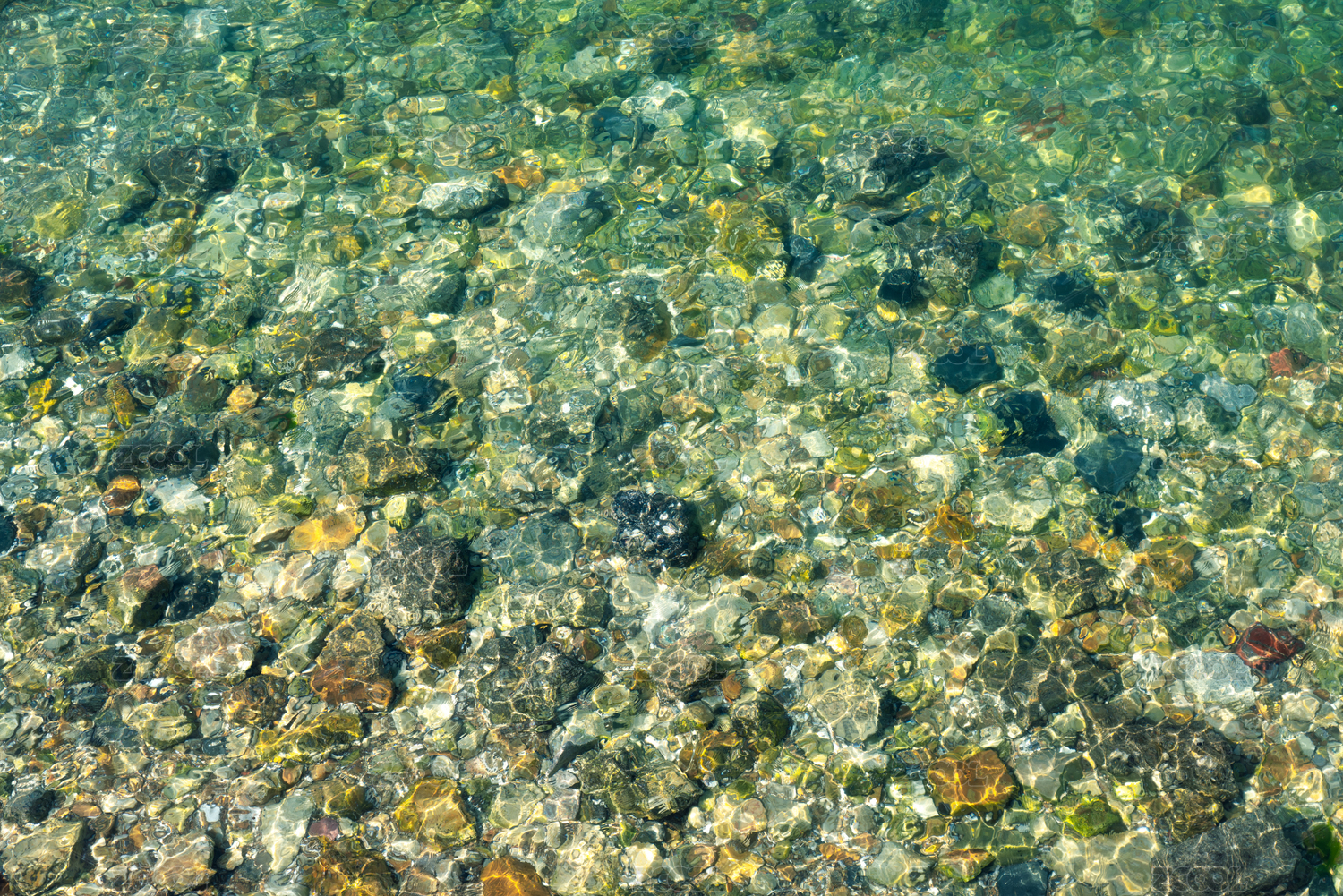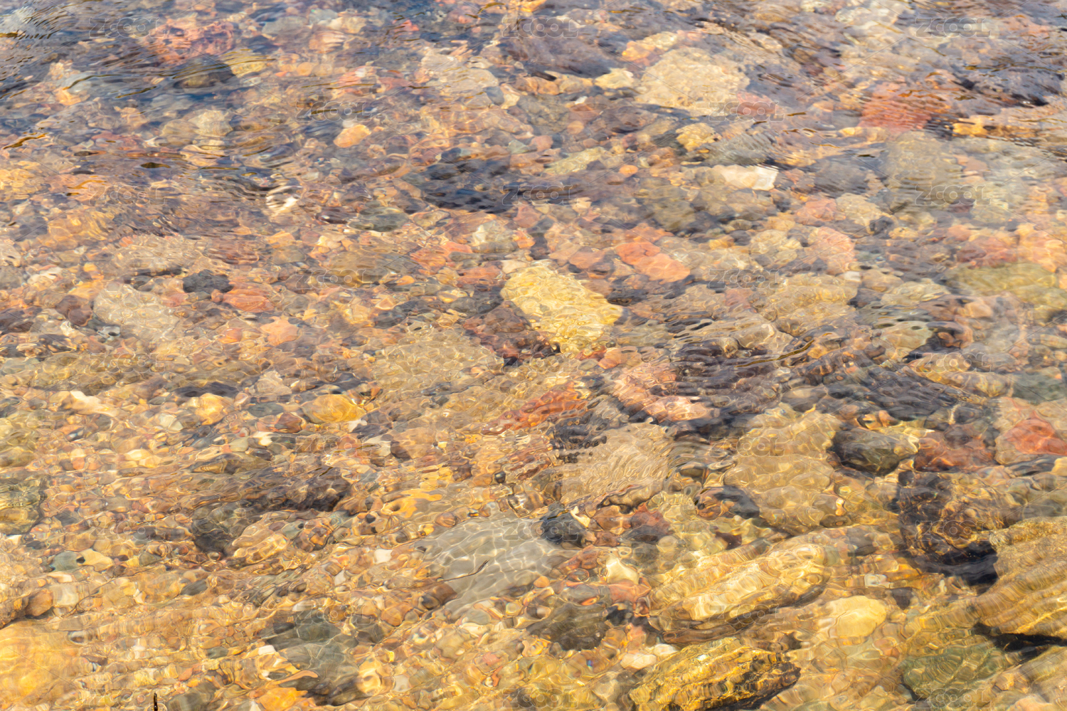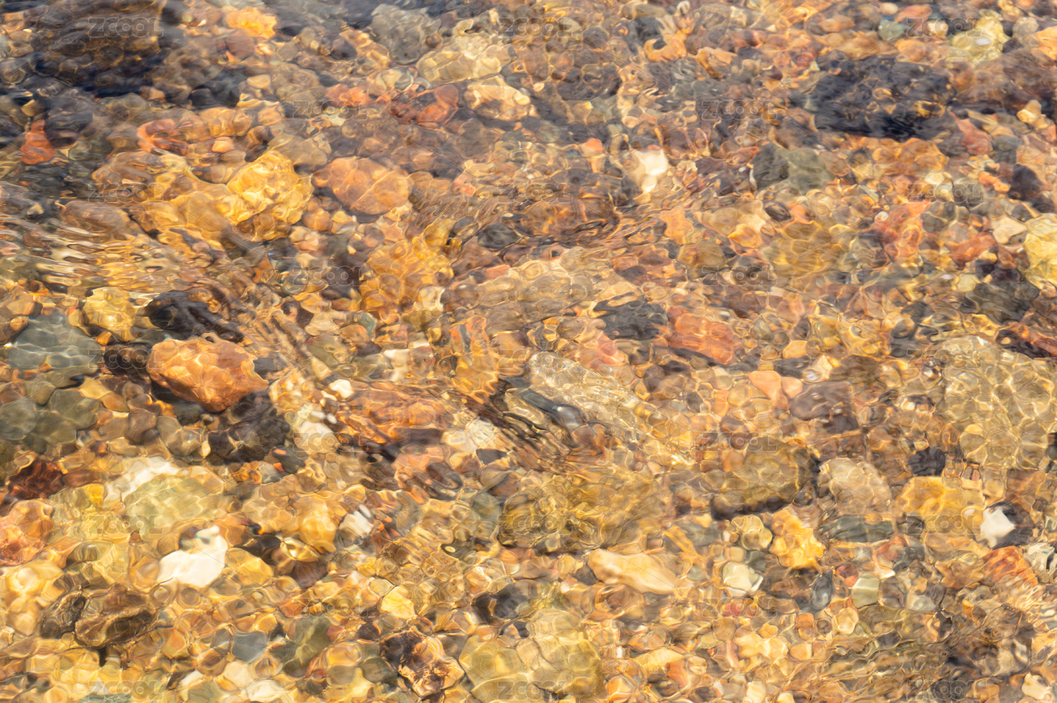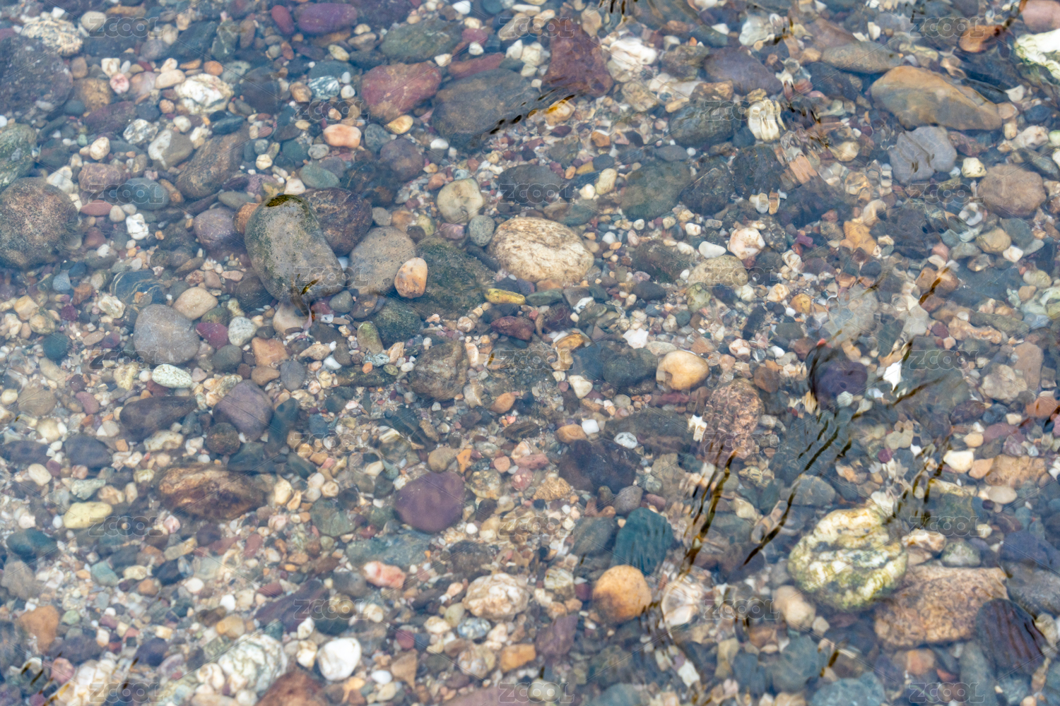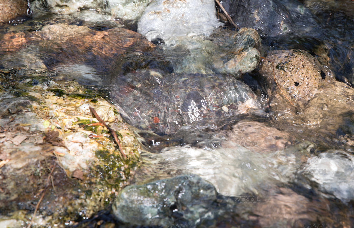 中国成都雅安龙苍沟阳光下斑驳的水跟石头