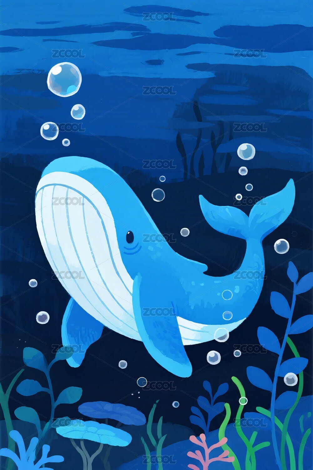 珊瑚,鲸鱼,海洋,水族,海草,气泡,插画,水下,自然,生物