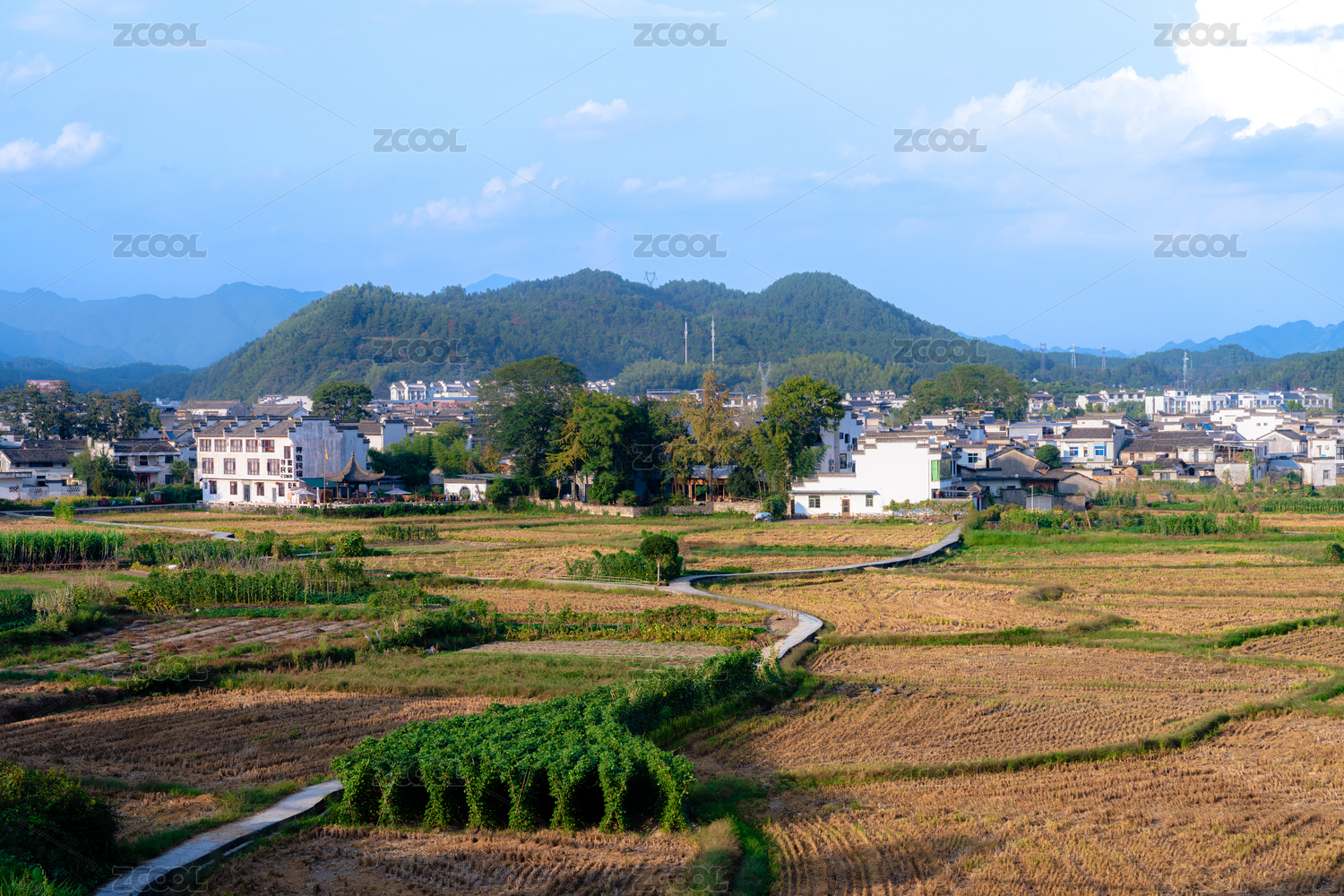 中国安徽省黄山市歙县呈坎村-秋季的农田