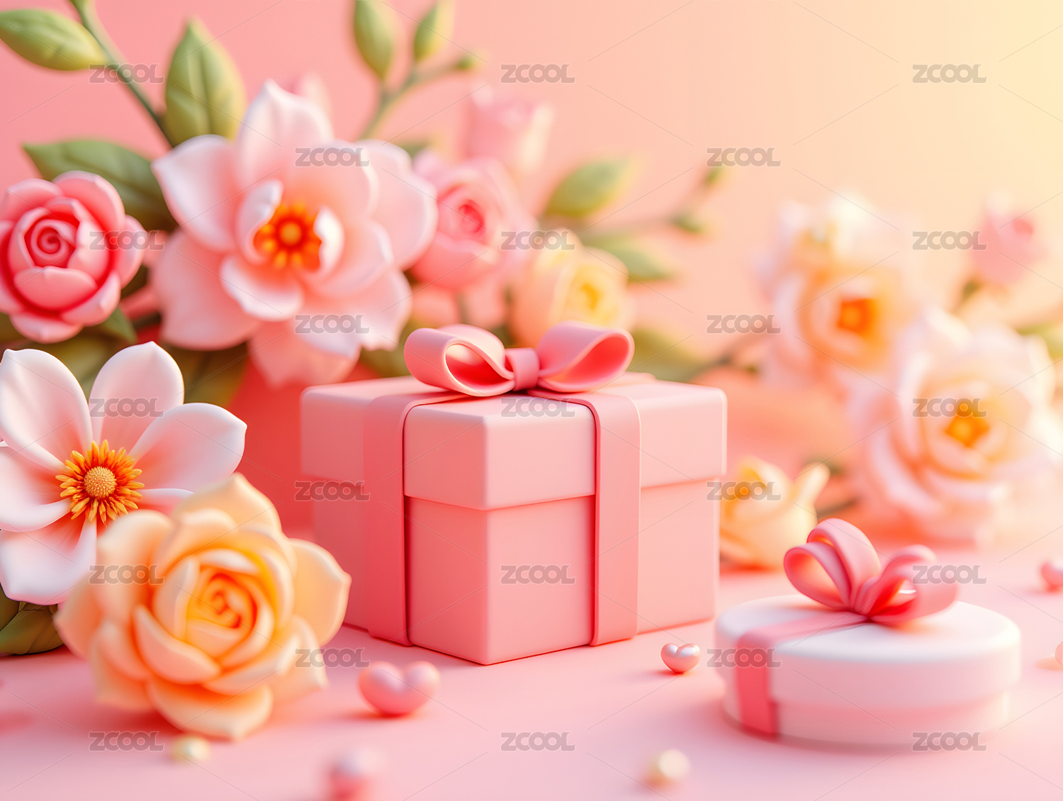粉色礼盒与玫瑰花束 节日浪漫温馨场景