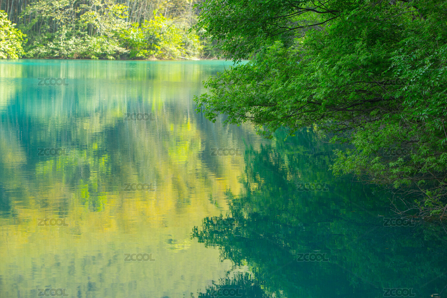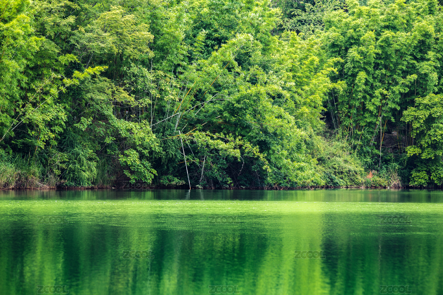 竹林倒影在湖面