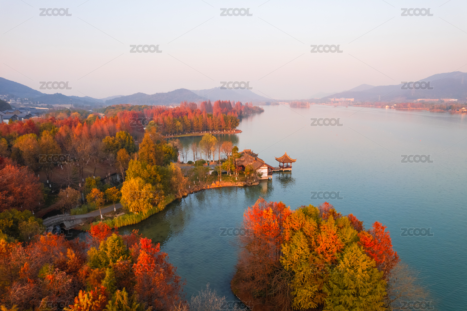 杭州萧山湘湖澹然亭江南水乡秋天自然风景
