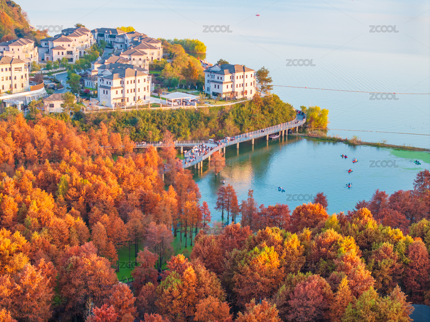浙江杭州西湖杨公堤红栎山庄秋季景色