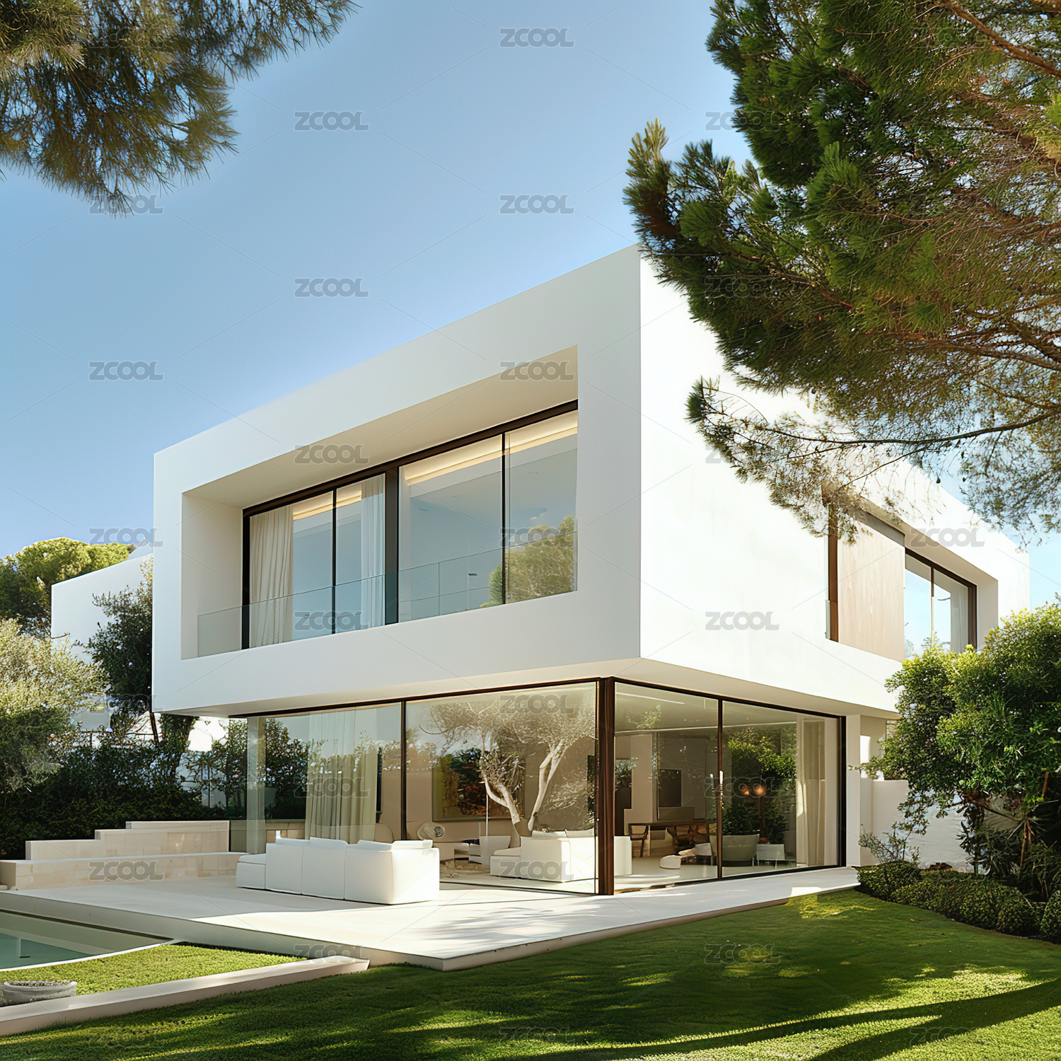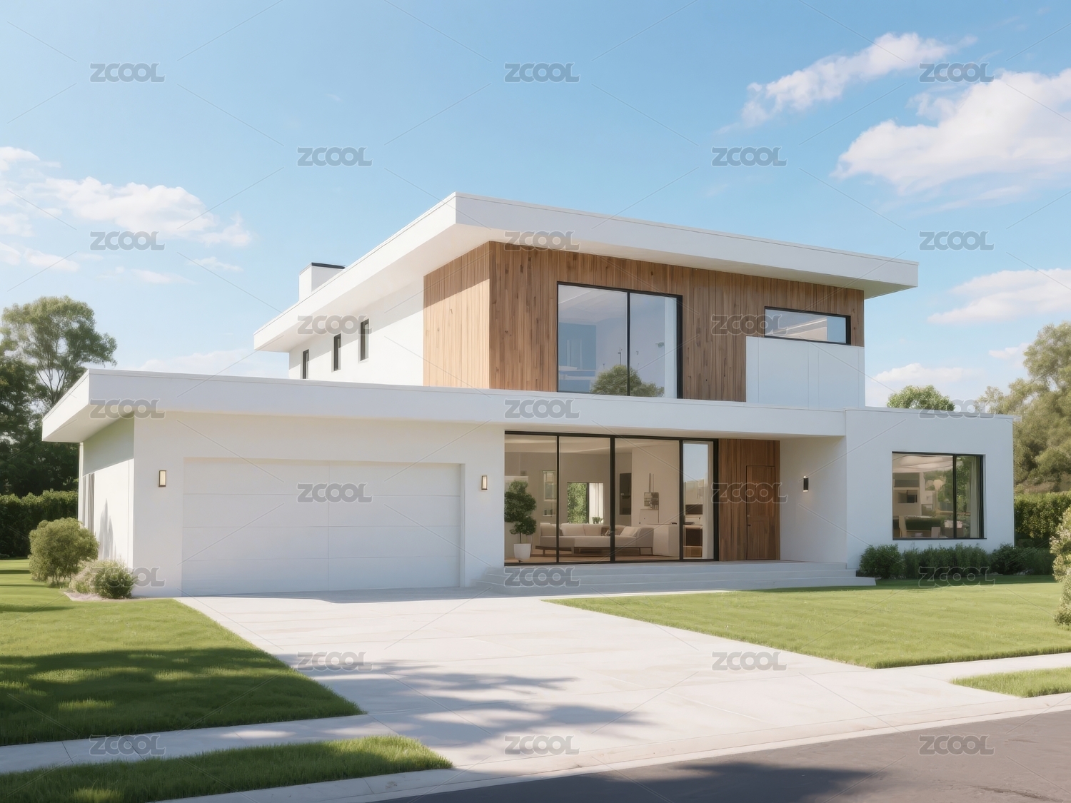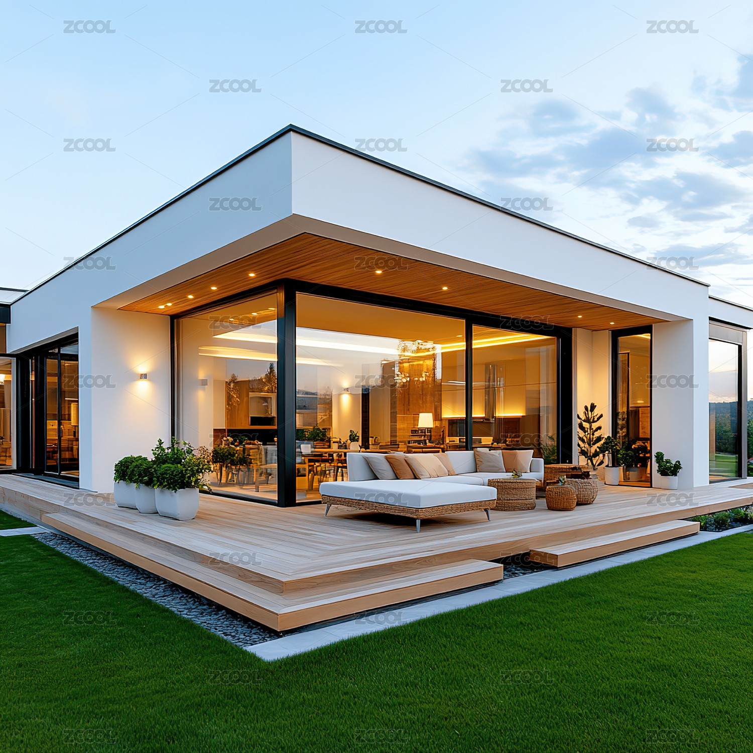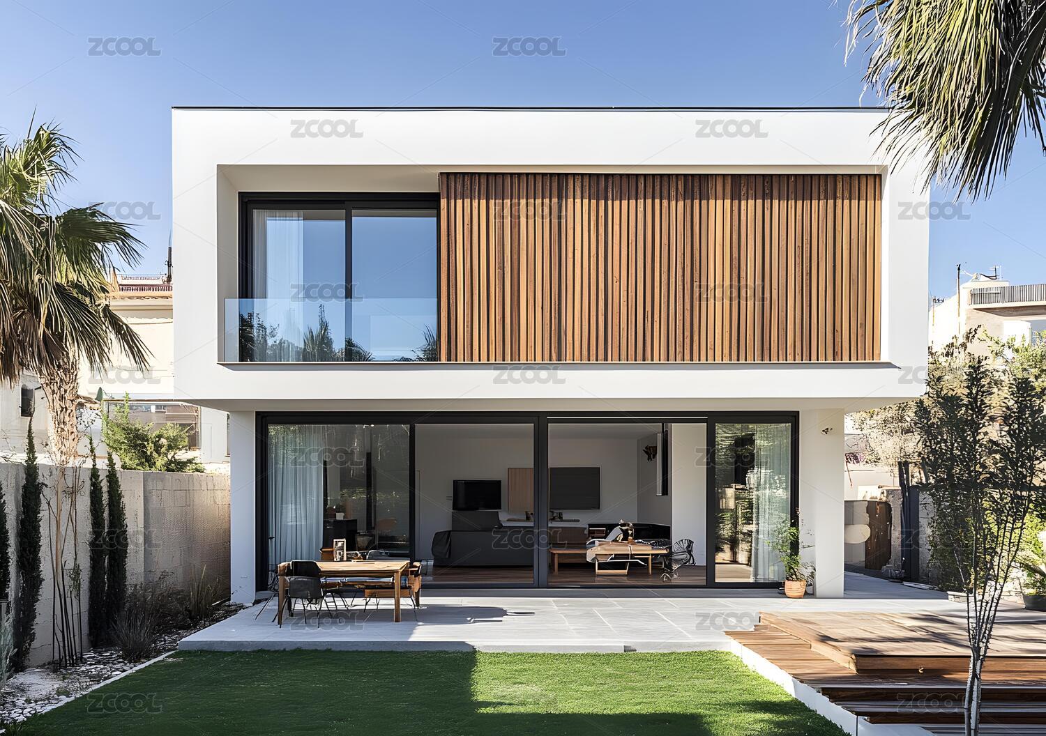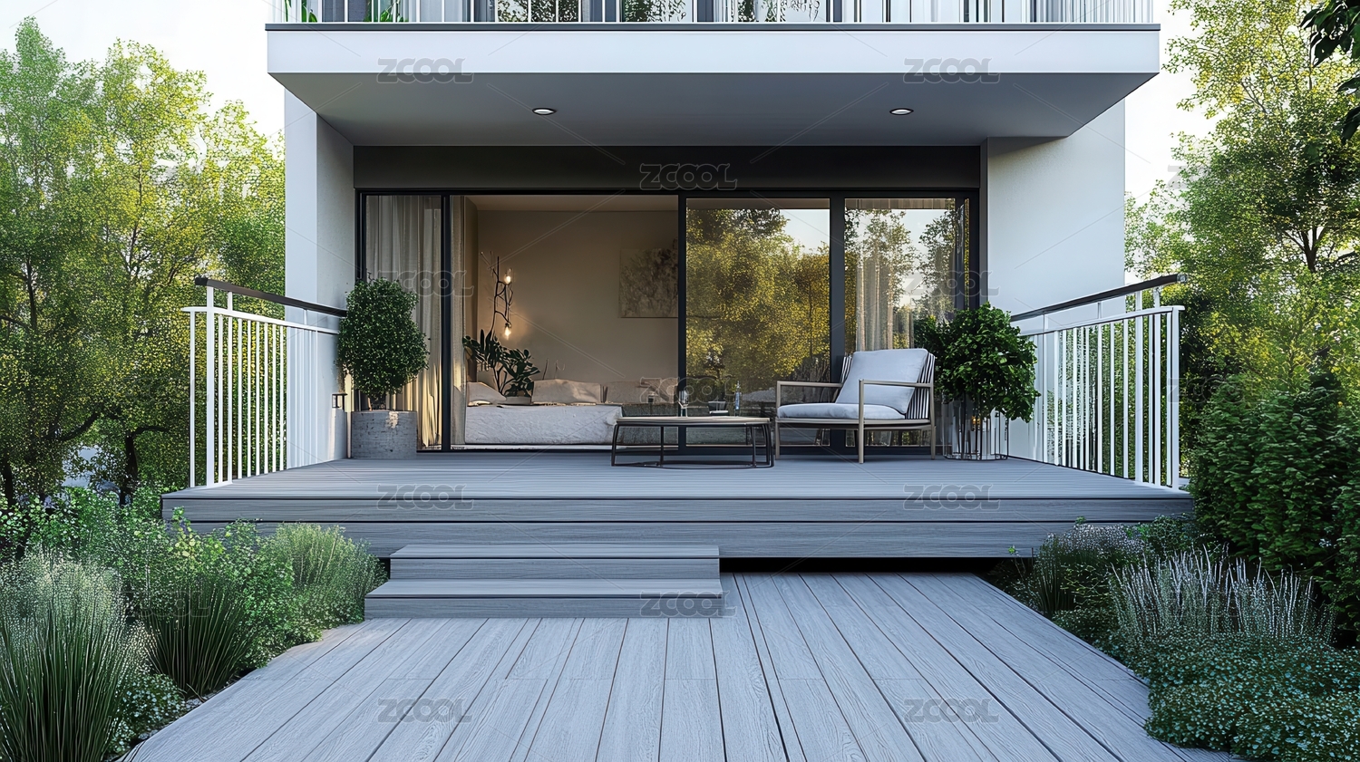 别墅,庭院,木质平台,绿植,户外,现代风格,建筑,摄影,景观,房屋