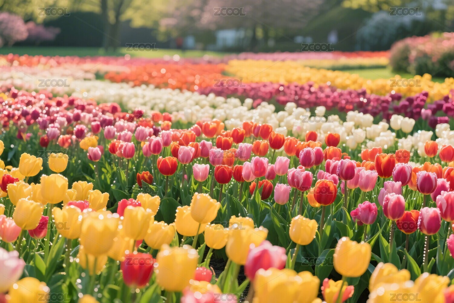 彩色郁金香花田