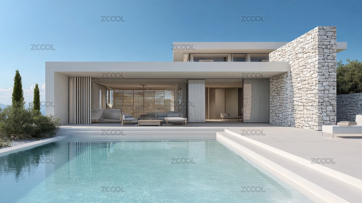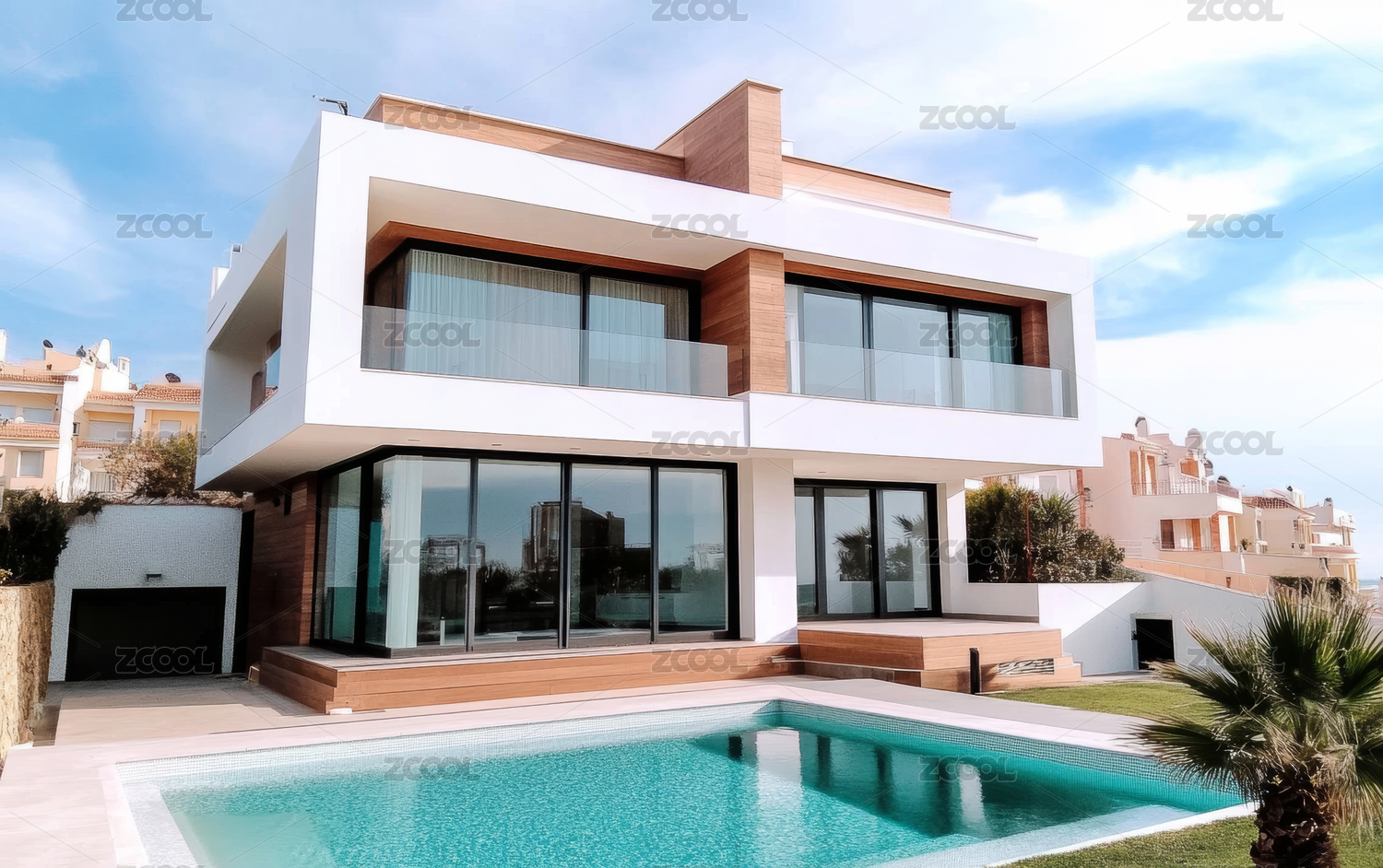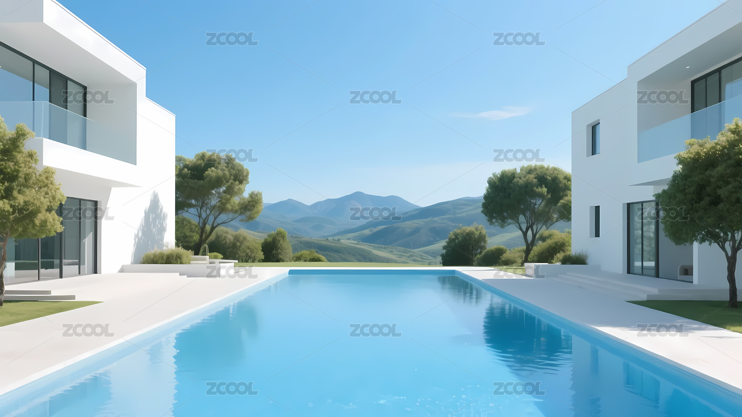 现代白色建筑与泳池