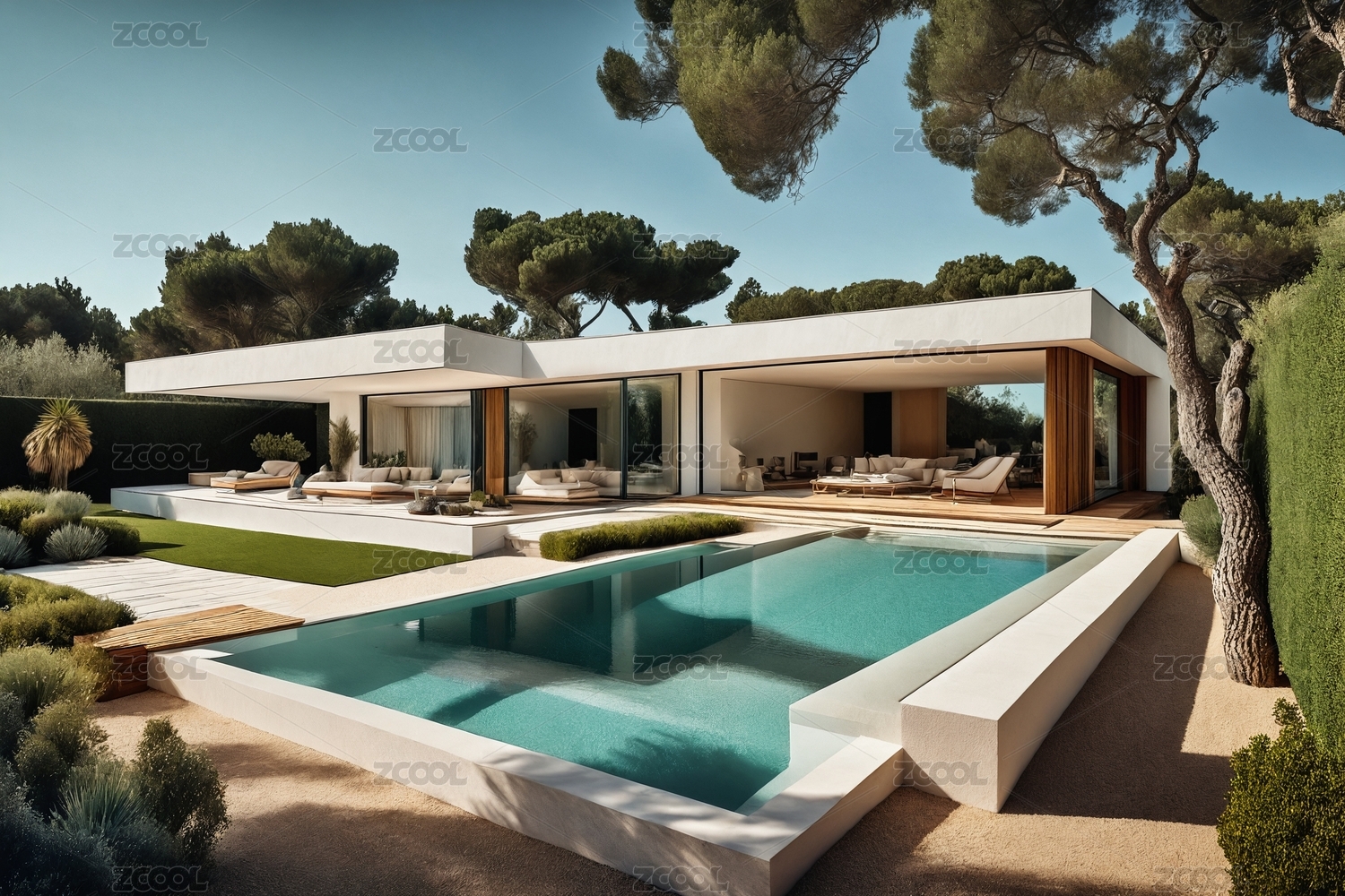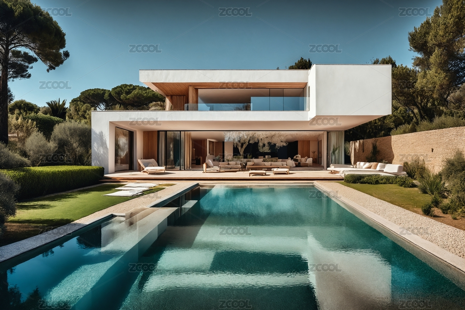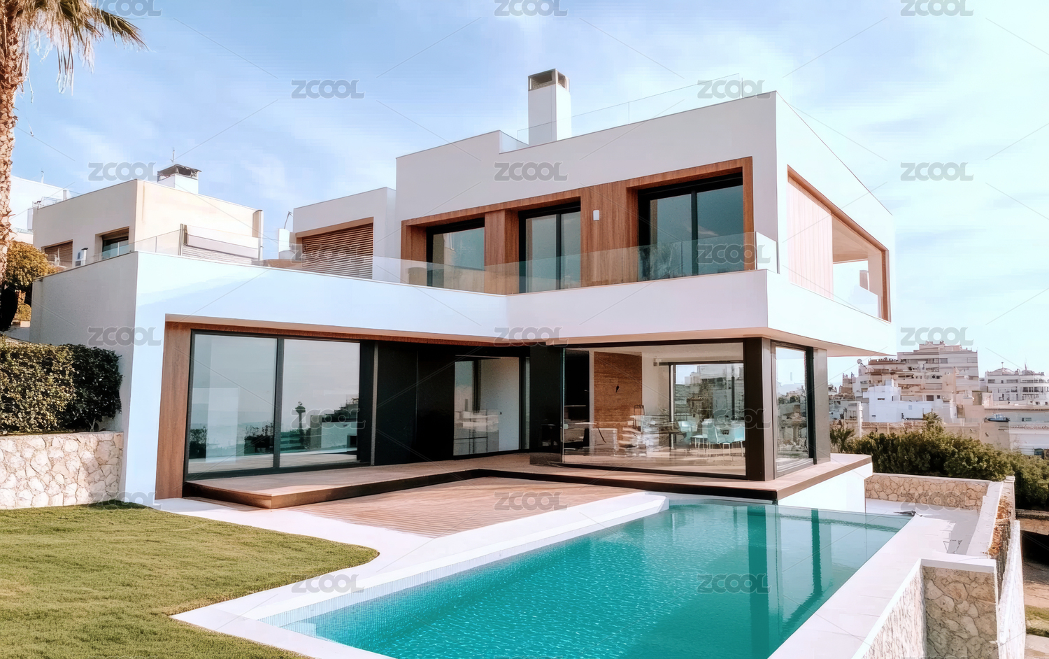 现代白色建筑与泳池