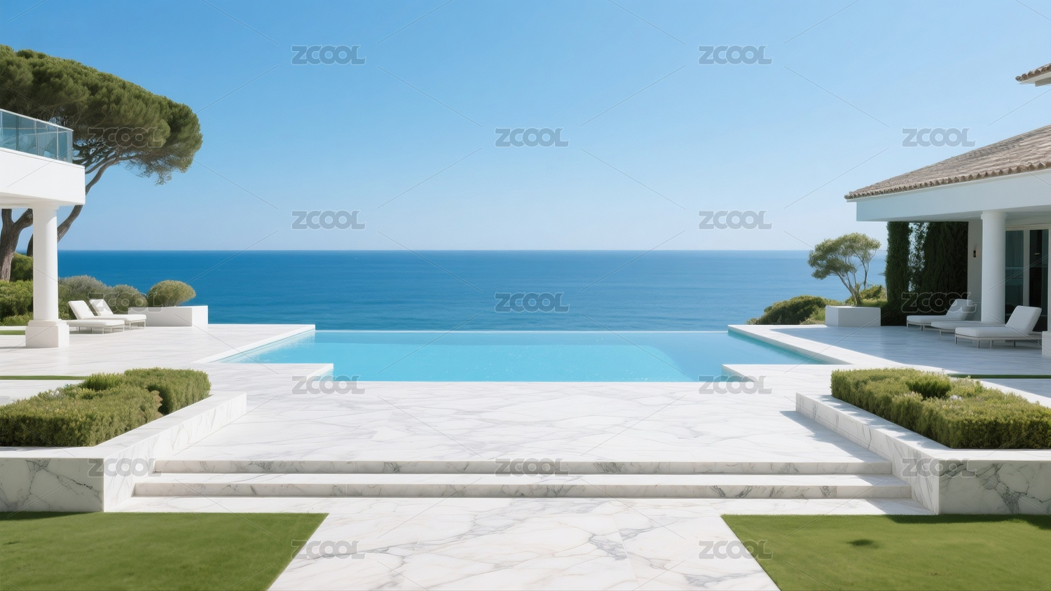 现代海景别墅泳池背景