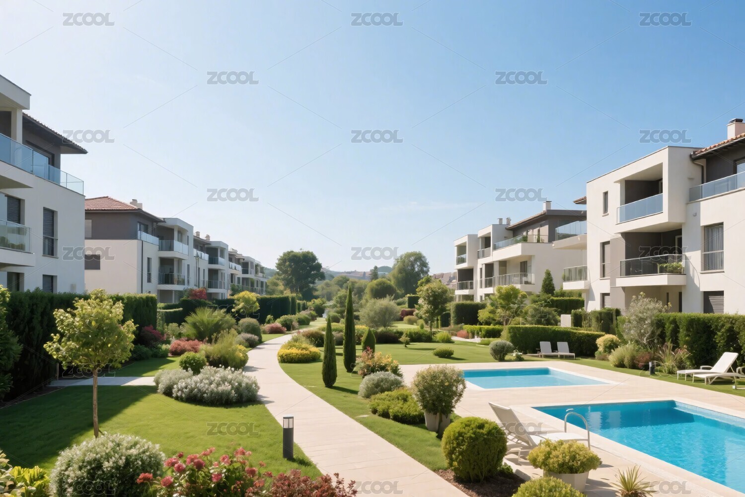 现代小区景观与泳池