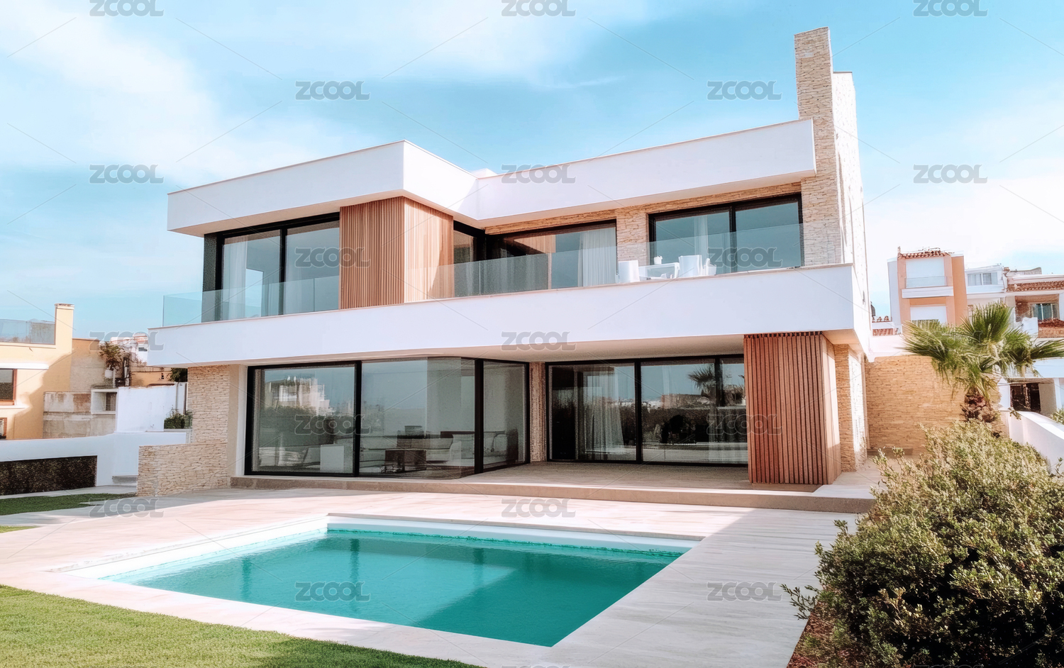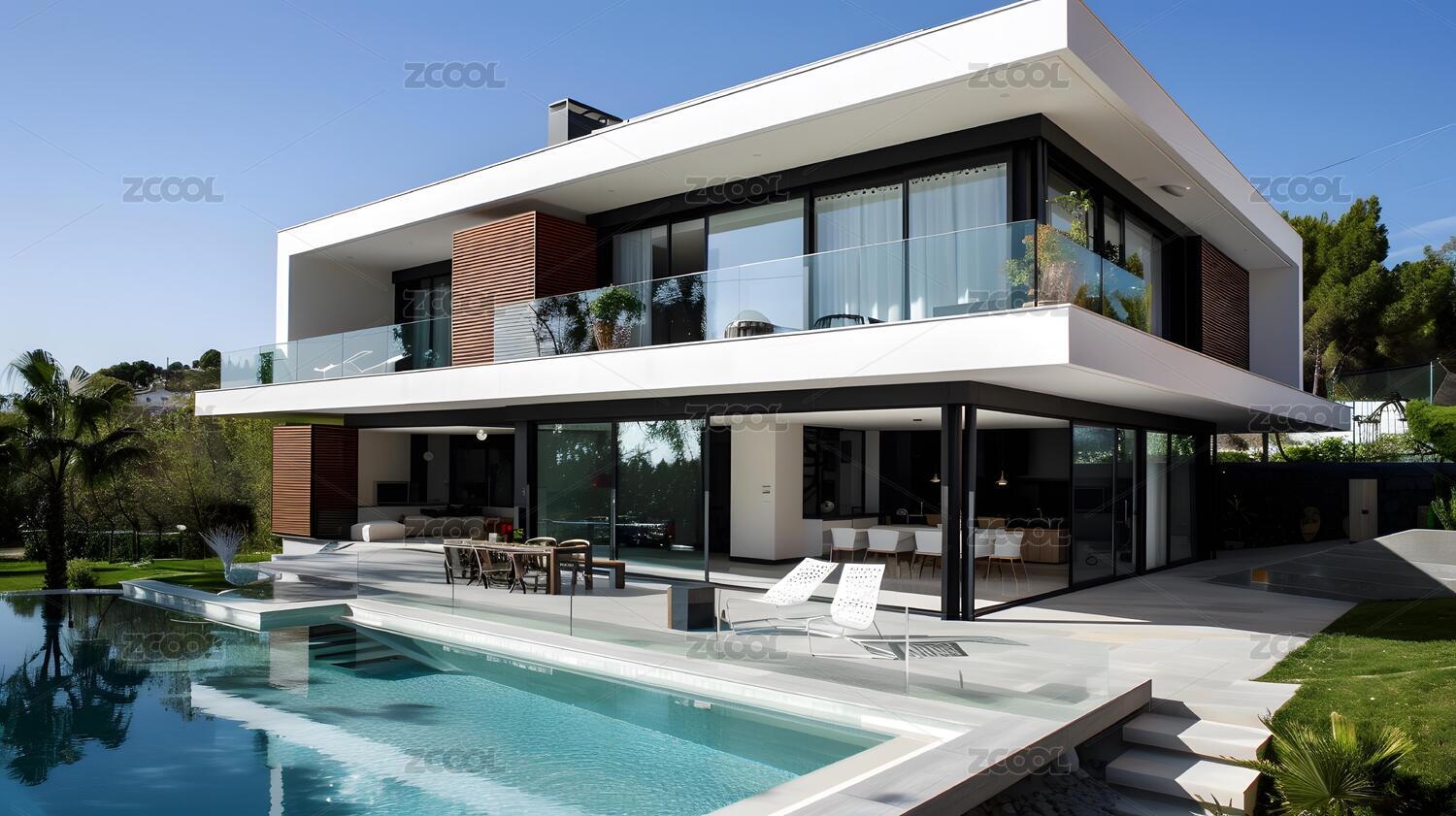 现代豪宅与泳池