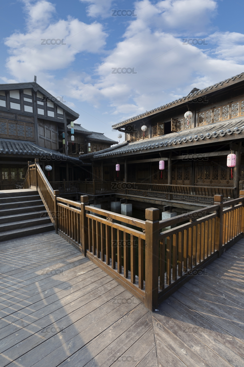 四川宜宾李庄古镇木结构青瓦房水面光影