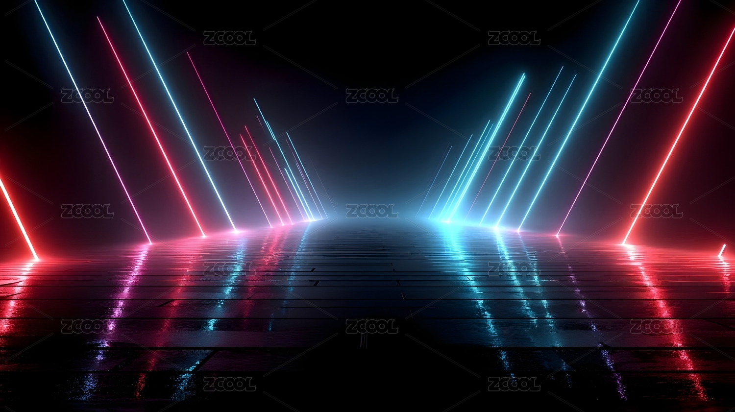抽象霓虹灯发光几何线条3D渲染商务背景