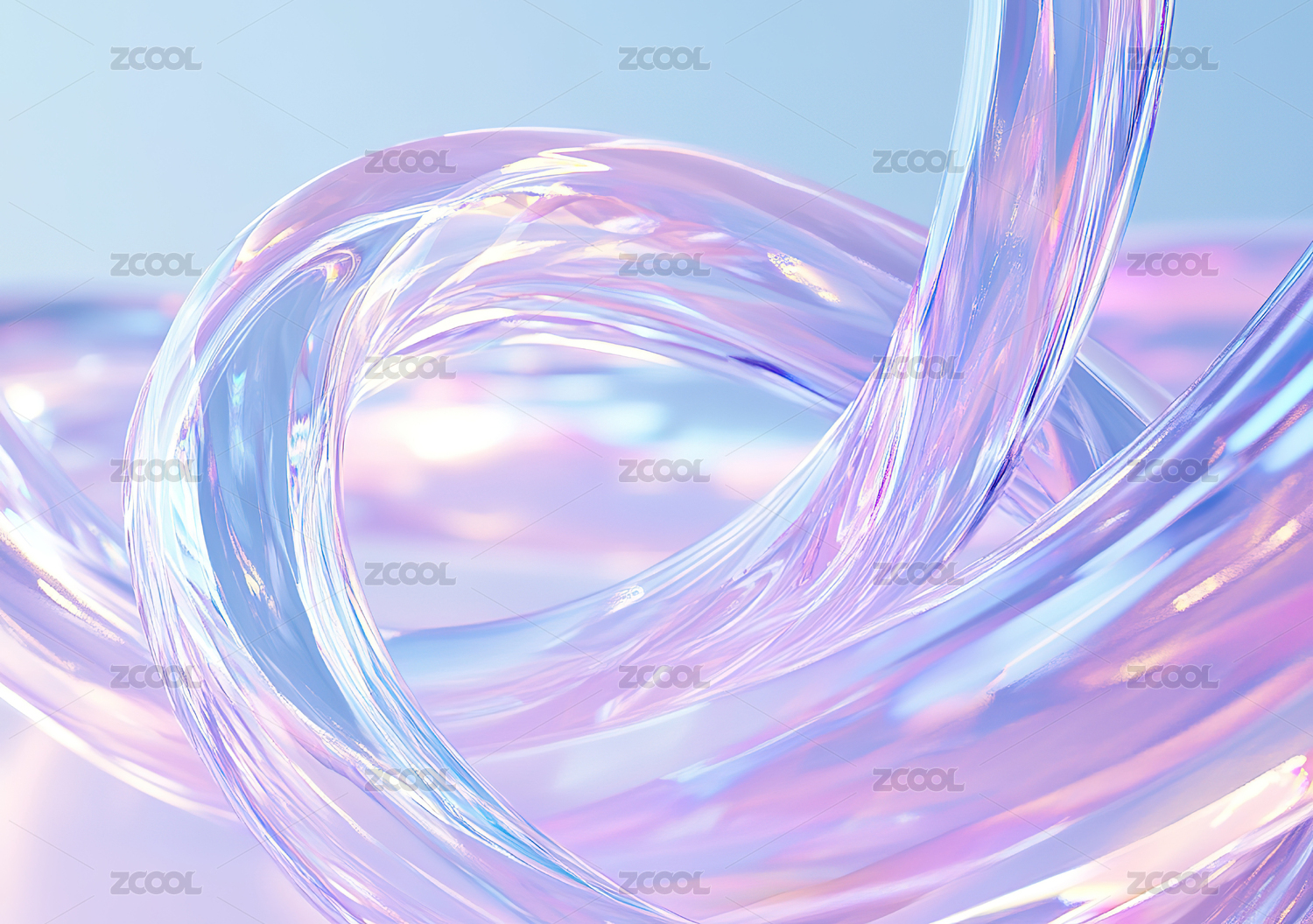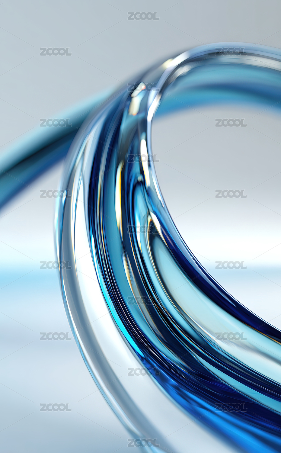 蓝色透明的圆环玻璃特写,干净科技感背景