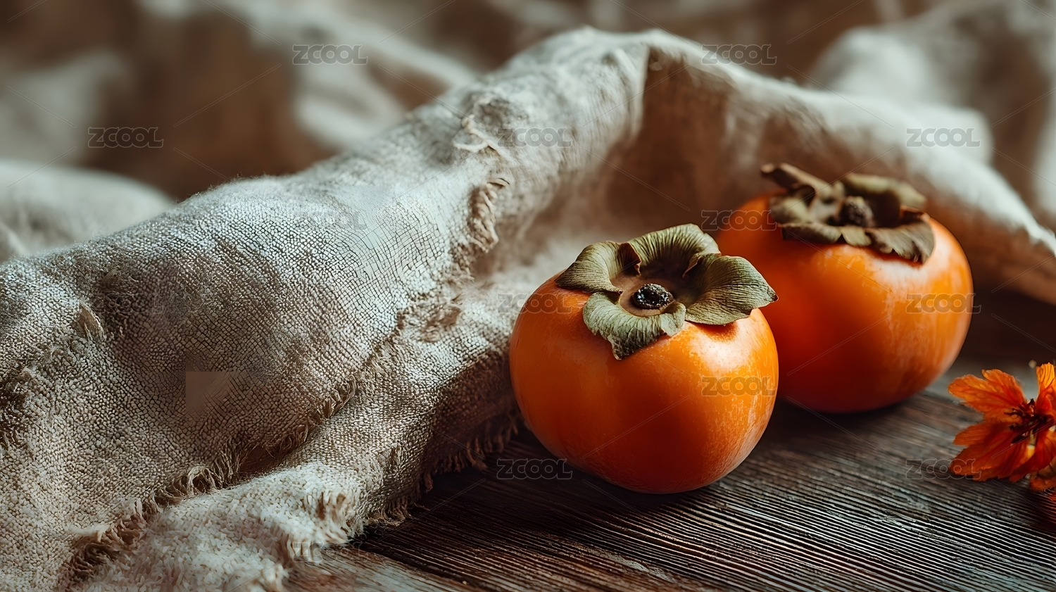 秋季柿子与红叶静物