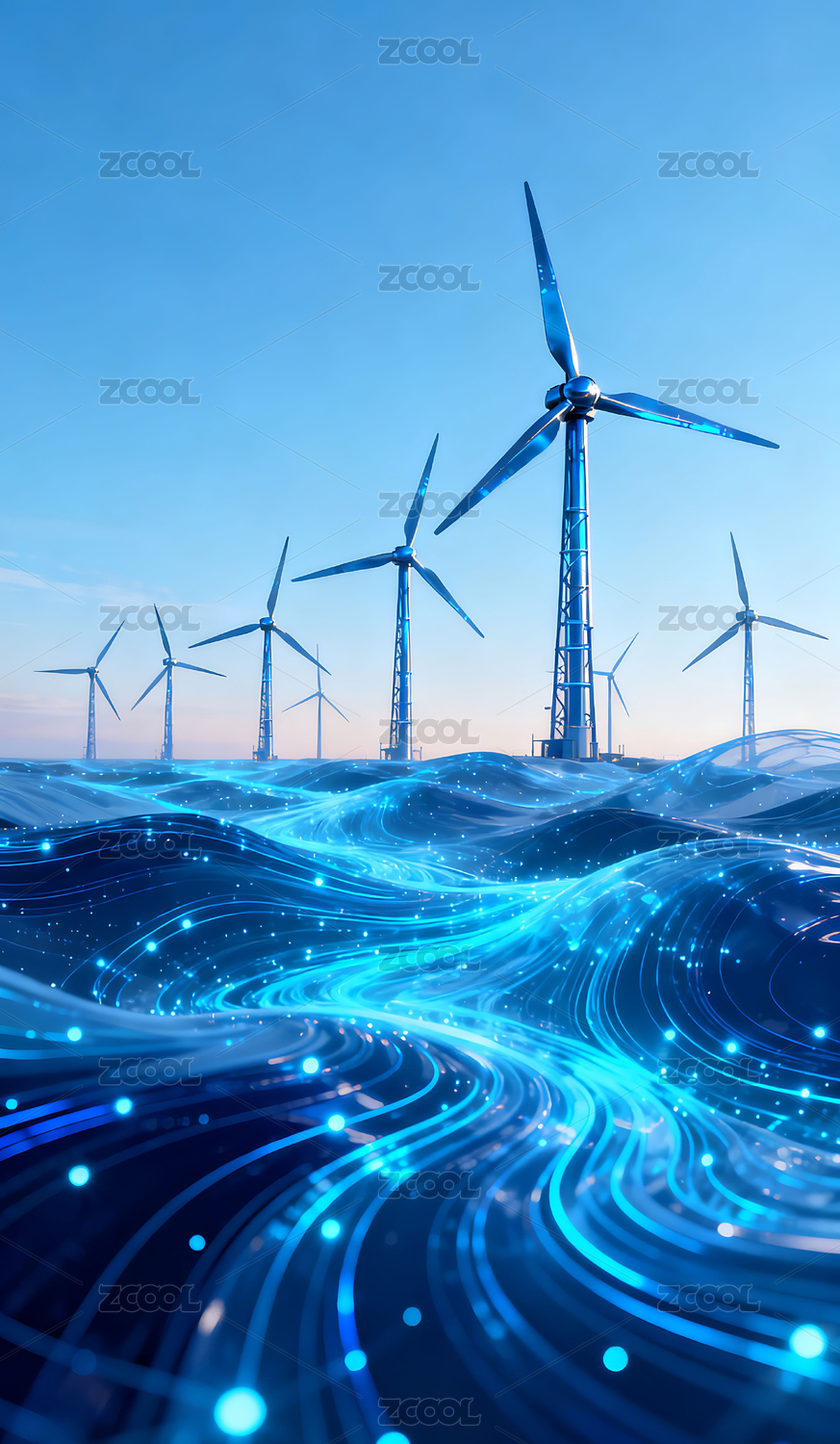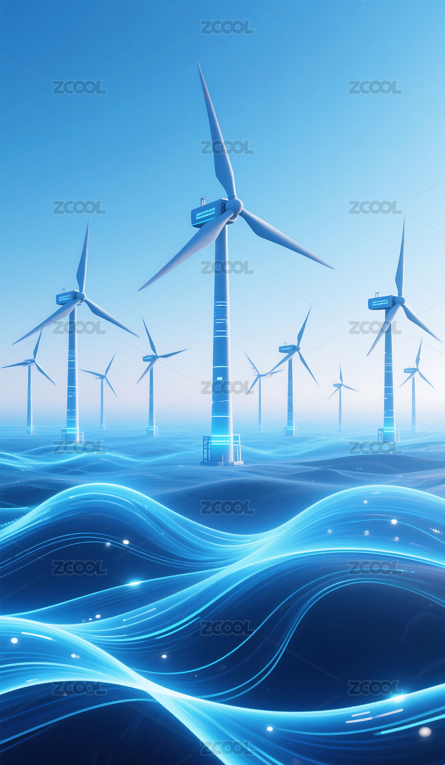 蓝色,光线,光效,流动,能源,环保,风力发电,风力发电机,背景