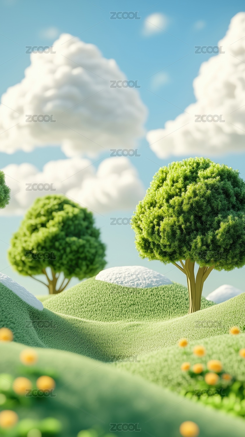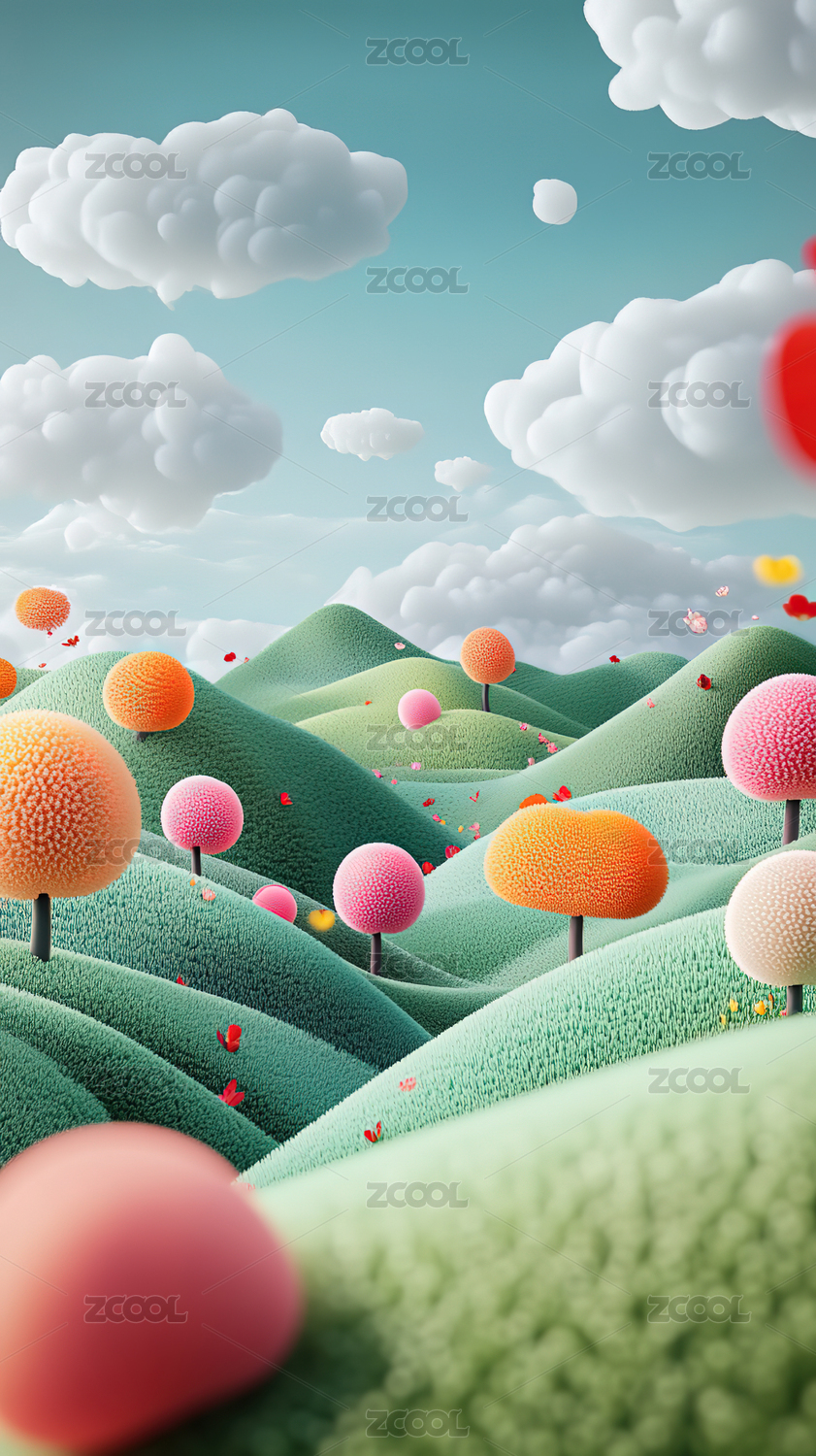 3D羊毛毡毛绒绒自然户外卡通场景背景