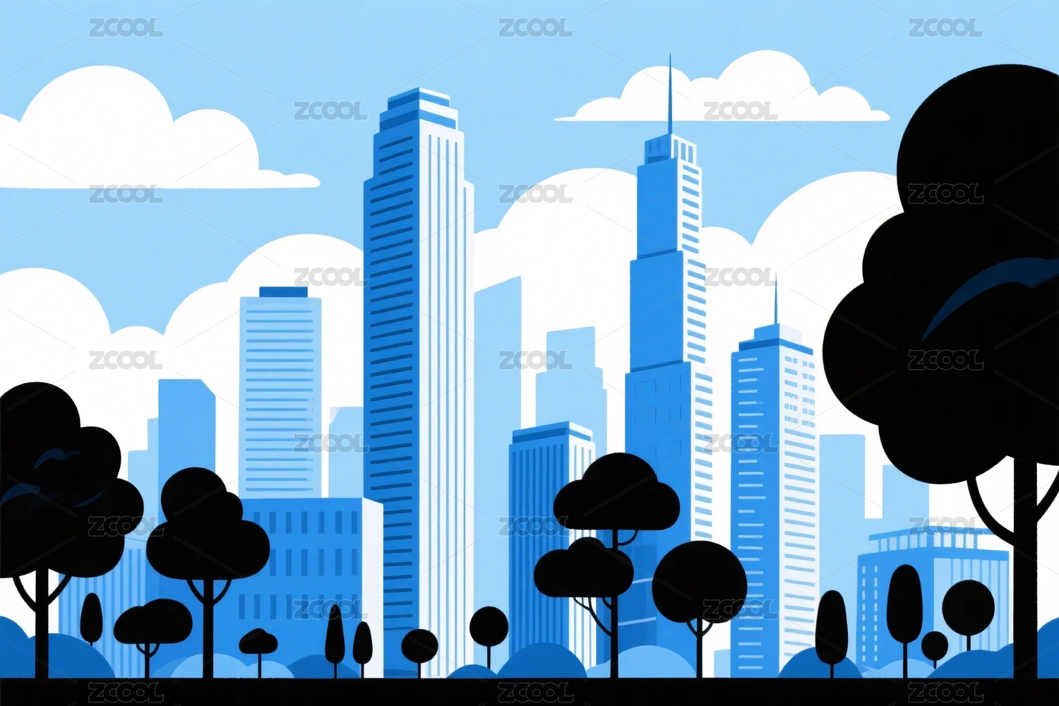 扁平风格,平面,插画,背景,城市,建筑,秋天,现代,高楼大厦,树林
