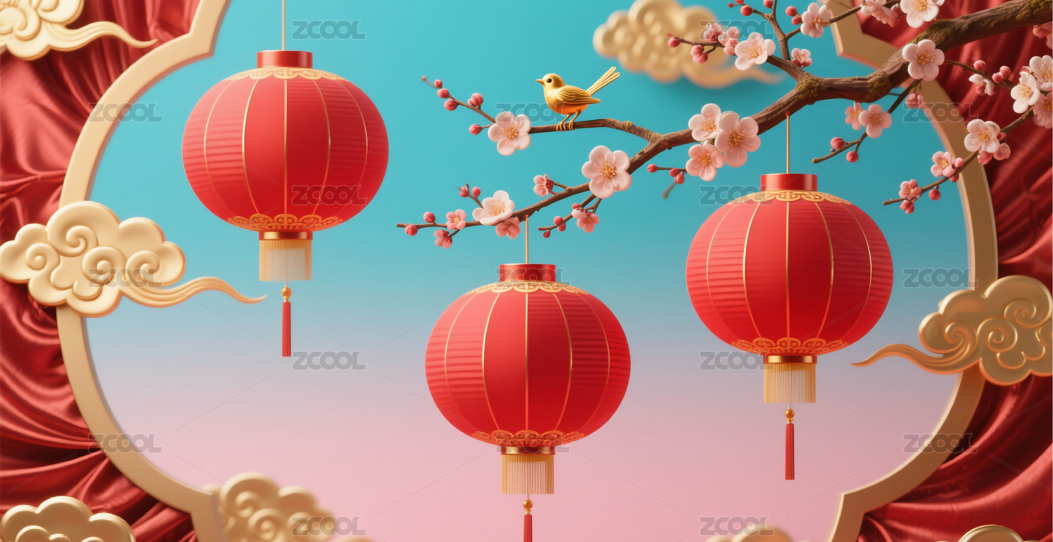 3D,春节,过年,中式,传统,灯笼,背景,庆祝,喜庆,祥云