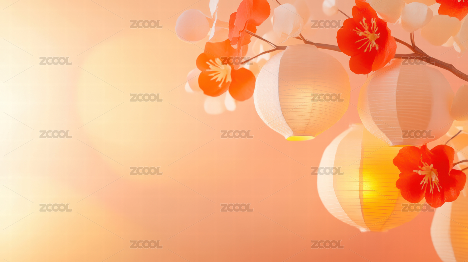 中式灯笼与樱花枝条