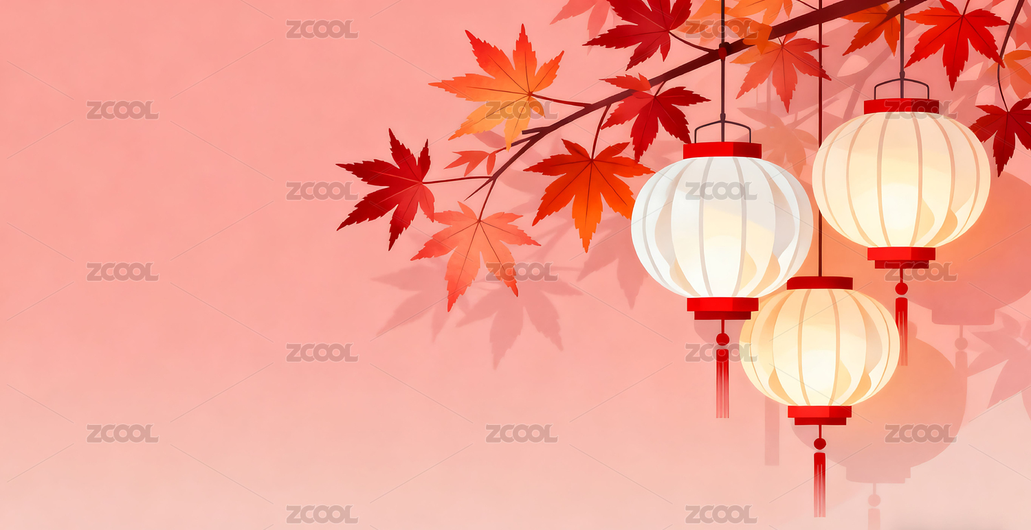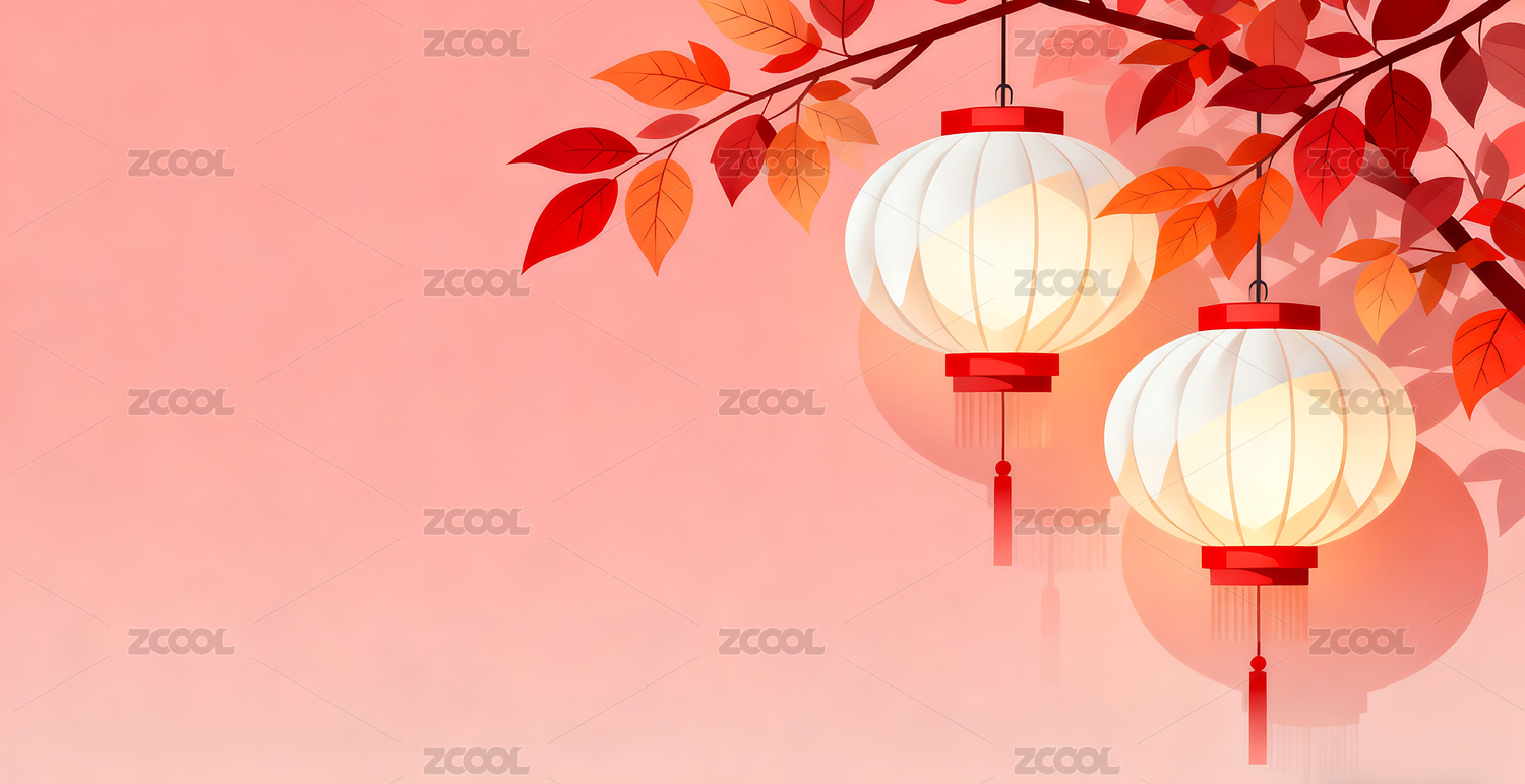 扁平风格,简约,灯笼,植物,插画,背景,壁纸,秋天,艺术
