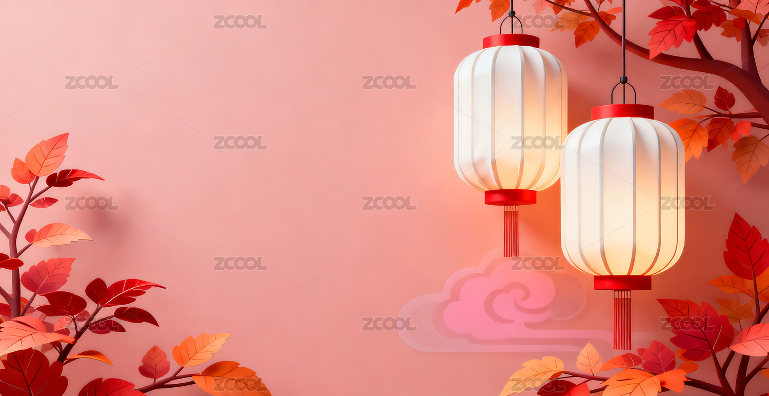 3D秋天传统灯笼背景