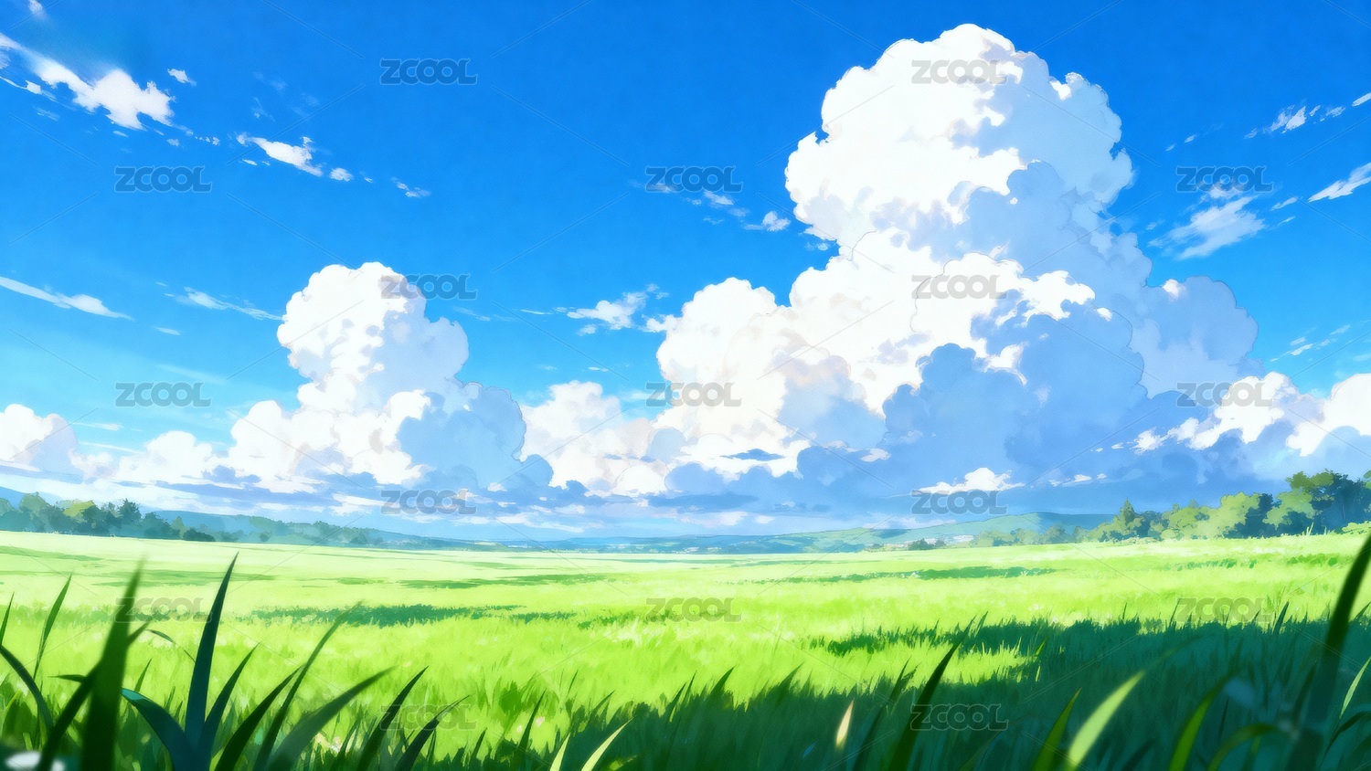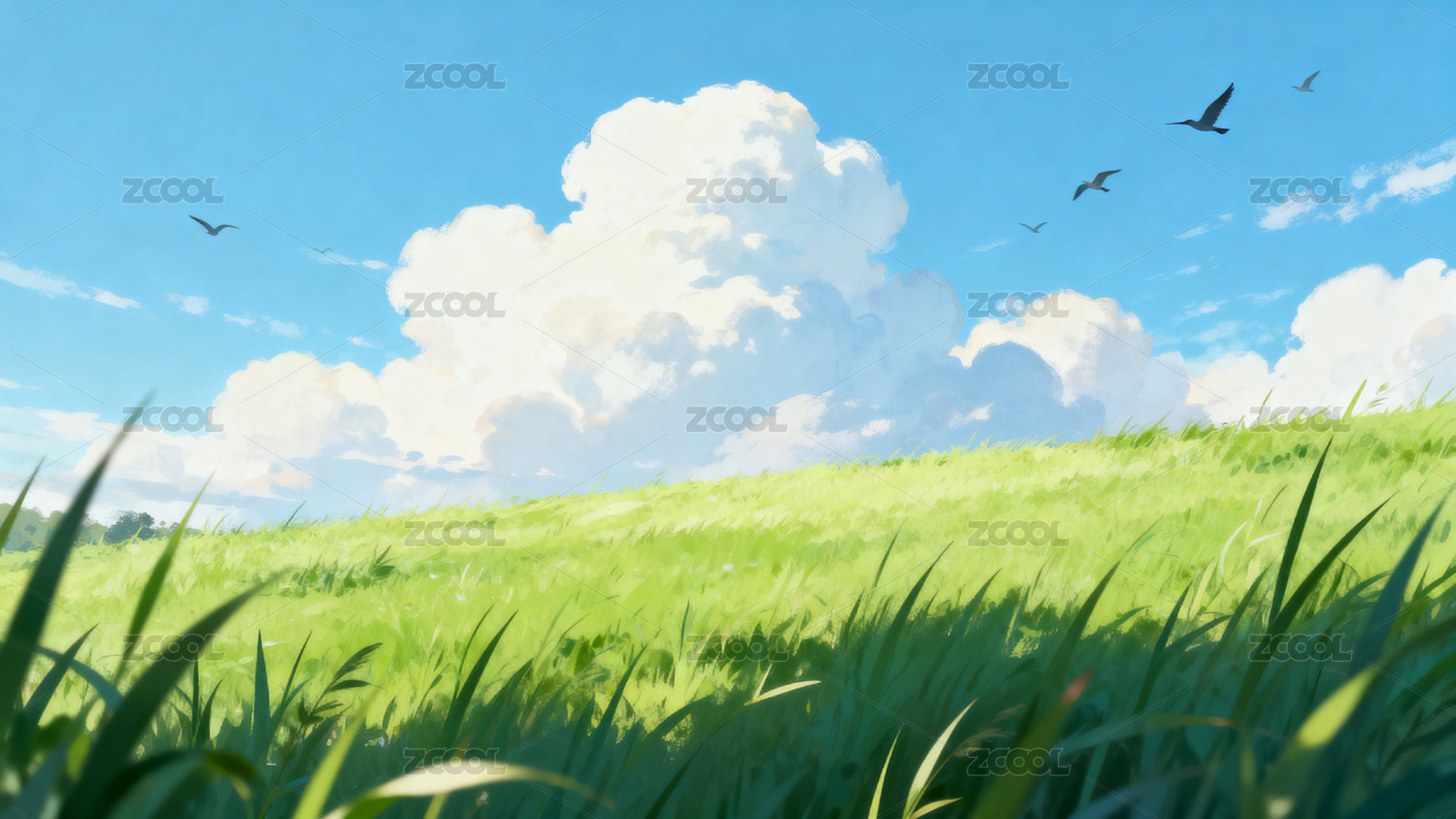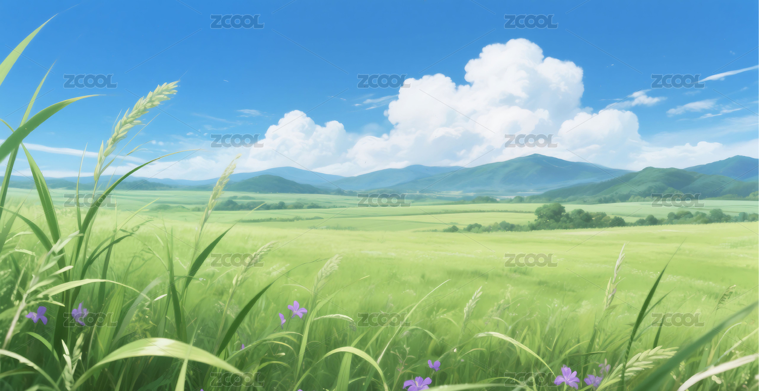 自然,户外,草原,风景,插画,背景,壁纸,天空,清新,生机