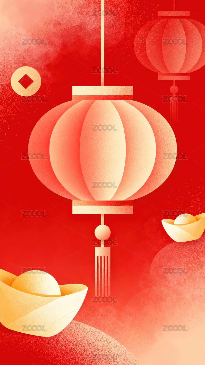 扁平风格,春节,过年,庆祝,灯笼,红灯笼,插画,背景,渐变,传统