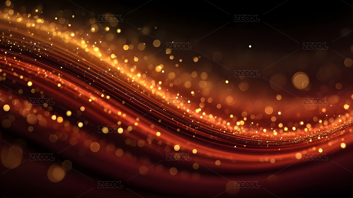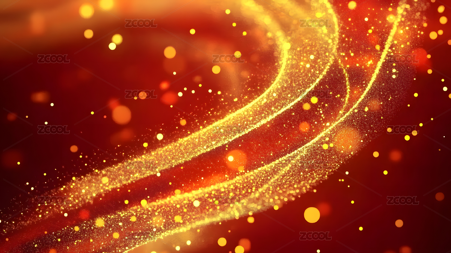 红色金色流动粒子曲线背景