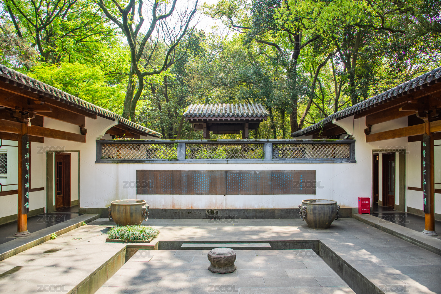 浙江杭州西湖畔云松书院白墙黛瓦的中式庭院