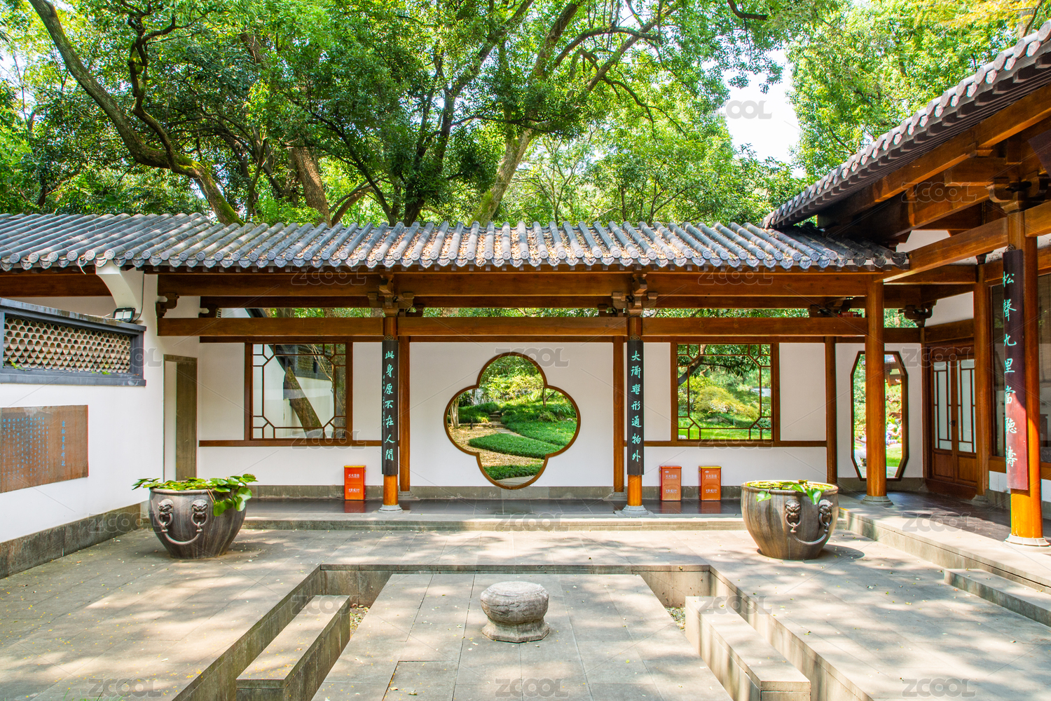 杭州云松书舍 中式庭院里的花型圆拱门