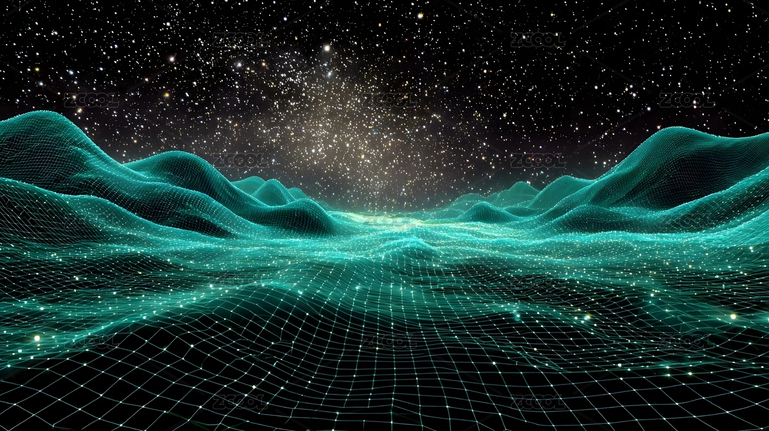 数字线框景观与星空背景