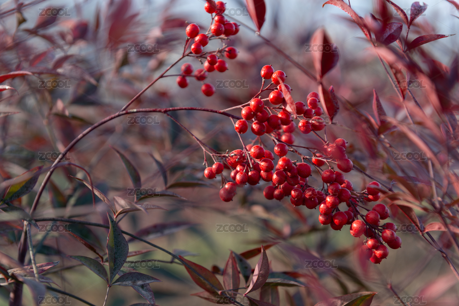 冬季南天竹植物枝头挂满红色果实