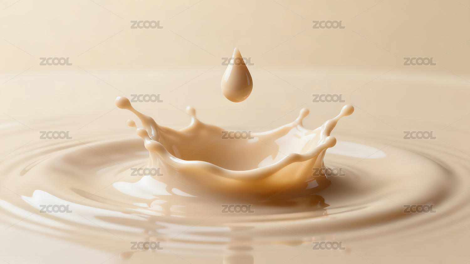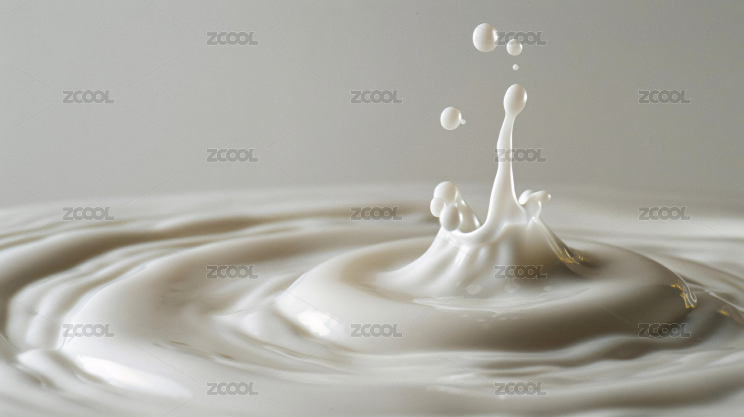 倒牛奶溅起的水珠和波纹,近景,牛奶饮品广