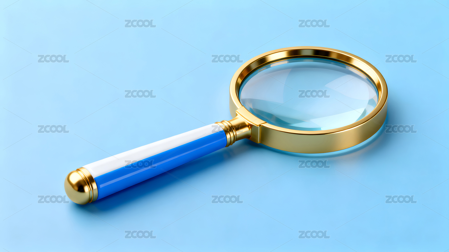 放大镜特写蓝色背景精致