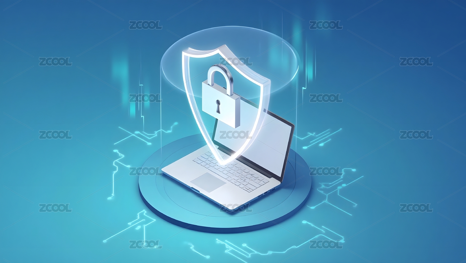蓝色盾牌锁图标网络安全主题