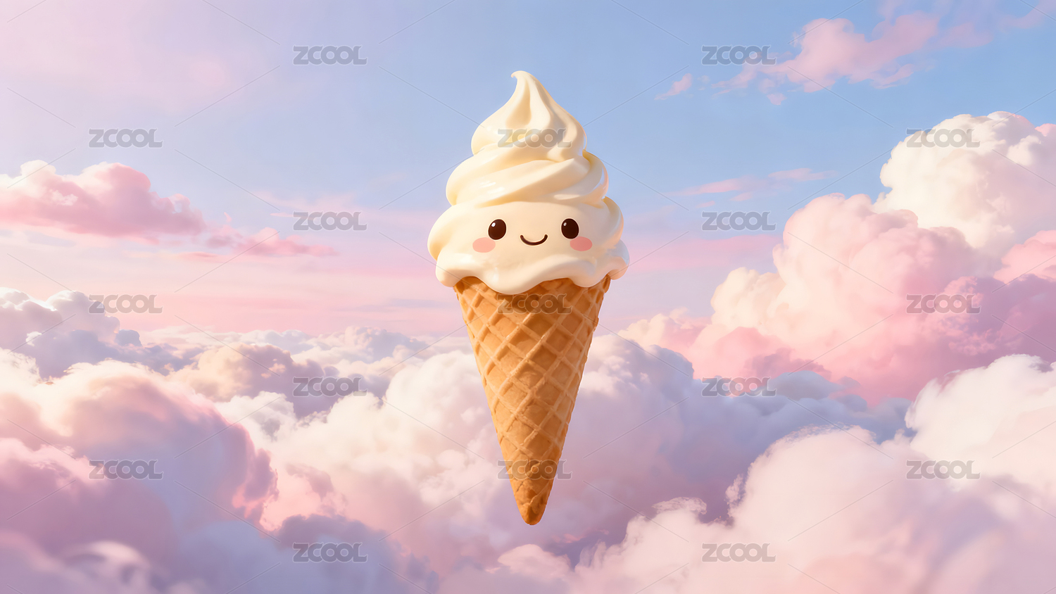 蓝色,天空,梦幻,可爱,微笑,粉色,柔软,美味,云朵,治愈