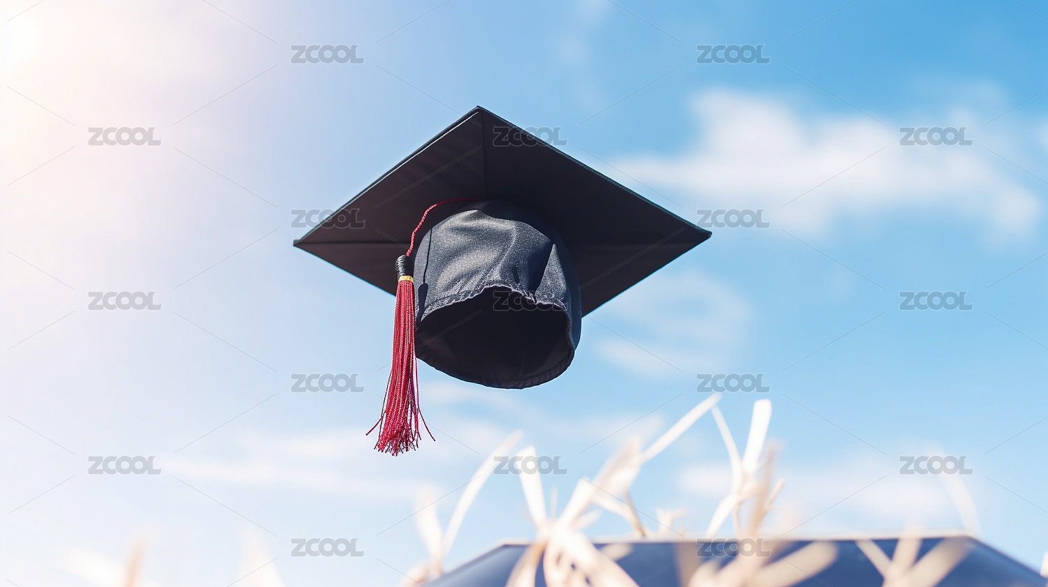 毕业季抛向空中的学士帽